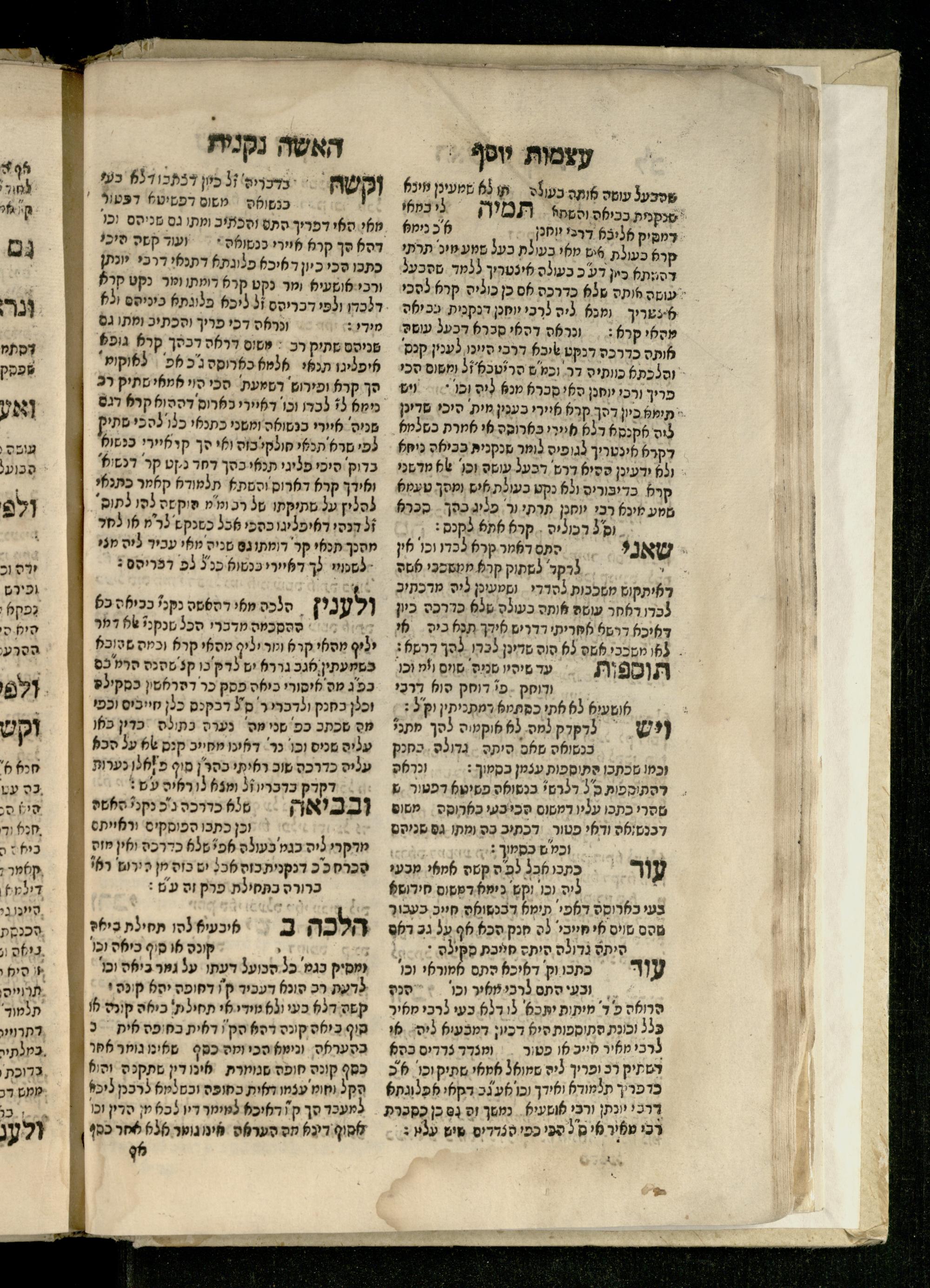 Sefer ʿAtsmot Yosef : ṿe-hu beʾur kelalim meḥudashim she-ha-Torah nidreshet ba-hem ... : gam ba ha-beʾur be-ʿiyun u-ve-filpul nimrats be-masekhet Ḳidushin mi-teḥilatah ʿad sofah ... gam ... be-sugyat Parah ṿe-Raḥel be-p. Kol ha-baśar u-ve-sof pereḳ Ketsad ha-regel ... / ḥibartiṿ ṿe-gam yisadtiṿ ani ha-tsaʿir Yosef ben Yitsḥaḳ ... n. ʿEzra ...ספר עצמות יוסף : והוא ביאור כללים מחודשים שהתורה נדרשת בהם ... : גם בא הבאור בעיון בעיון ובפלפול נמרץ במסכת קידושין מתחילתה עד סופה ... גם ... בסוגיית פרה ורחל בפ׳ כל הבשר ובסוף פרק כיצד הרגל ... / חברתיו וגם יסדתיו אני הצעיר יוסף בן יצחק ... ן׳ עזרא ...