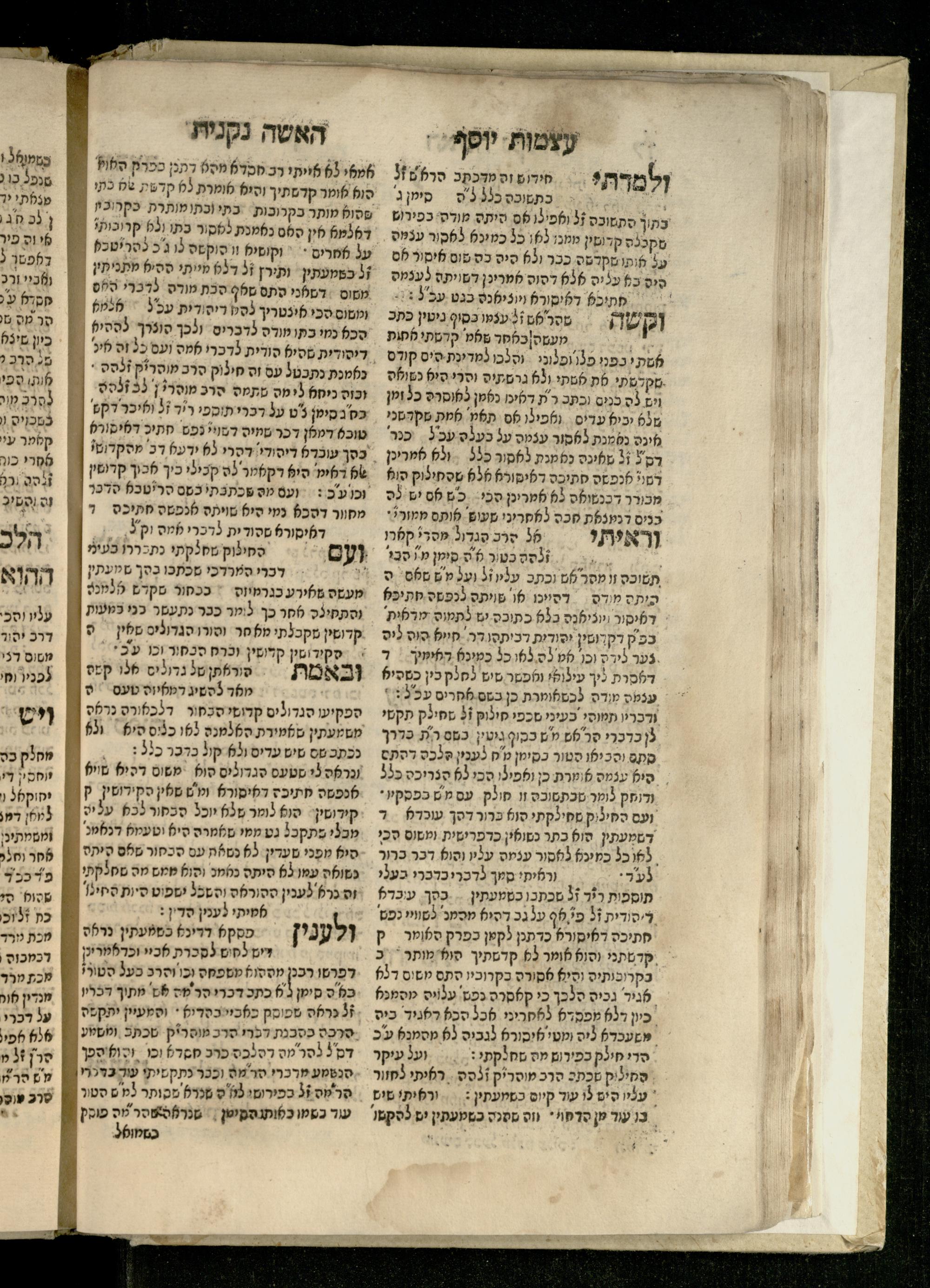 Sefer ʿAtsmot Yosef : ṿe-hu beʾur kelalim meḥudashim she-ha-Torah nidreshet ba-hem ... : gam ba ha-beʾur be-ʿiyun u-ve-filpul nimrats be-masekhet Ḳidushin mi-teḥilatah ʿad sofah ... gam ... be-sugyat Parah ṿe-Raḥel be-p. Kol ha-baśar u-ve-sof pereḳ Ketsad ha-regel ... / ḥibartiṿ ṿe-gam yisadtiṿ ani ha-tsaʿir Yosef ben Yitsḥaḳ ... n. ʿEzra ...ספר עצמות יוסף : והוא ביאור כללים מחודשים שהתורה נדרשת בהם ... : גם בא הבאור בעיון בעיון ובפלפול נמרץ במסכת קידושין מתחילתה עד סופה ... גם ... בסוגיית פרה ורחל בפ׳ כל הבשר ובסוף פרק כיצד הרגל ... / חברתיו וגם יסדתיו אני הצעיר יוסף בן יצחק ... ן׳ עזרא ...