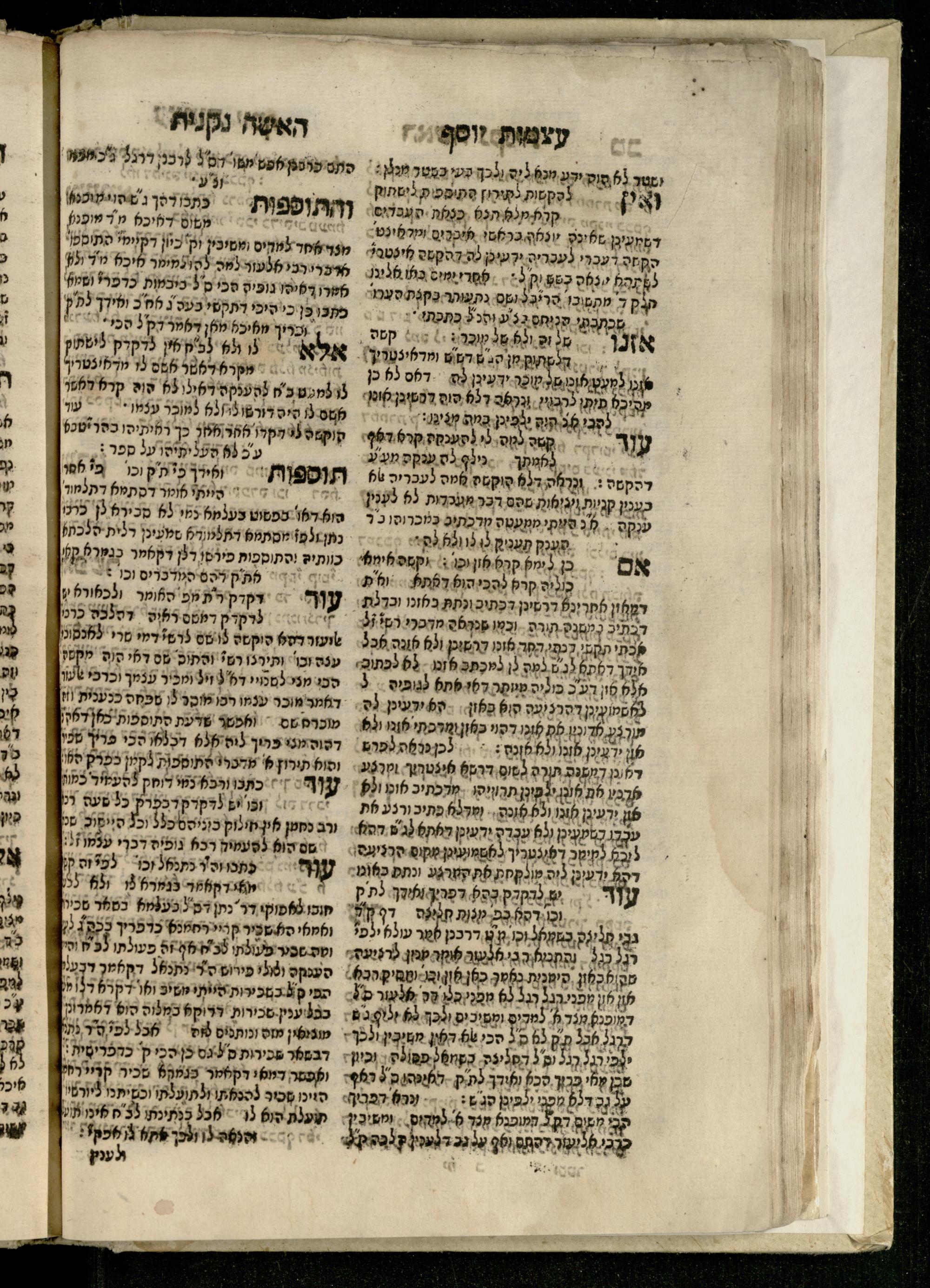 Sefer ʿAtsmot Yosef : ṿe-hu beʾur kelalim meḥudashim she-ha-Torah nidreshet ba-hem ... : gam ba ha-beʾur be-ʿiyun u-ve-filpul nimrats be-masekhet Ḳidushin mi-teḥilatah ʿad sofah ... gam ... be-sugyat Parah ṿe-Raḥel be-p. Kol ha-baśar u-ve-sof pereḳ Ketsad ha-regel ... / ḥibartiṿ ṿe-gam yisadtiṿ ani ha-tsaʿir Yosef ben Yitsḥaḳ ... n. ʿEzra ...ספר עצמות יוסף : והוא ביאור כללים מחודשים שהתורה נדרשת בהם ... : גם בא הבאור בעיון בעיון ובפלפול נמרץ במסכת קידושין מתחילתה עד סופה ... גם ... בסוגיית פרה ורחל בפ׳ כל הבשר ובסוף פרק כיצד הרגל ... / חברתיו וגם יסדתיו אני הצעיר יוסף בן יצחק ... ן׳ עזרא ...