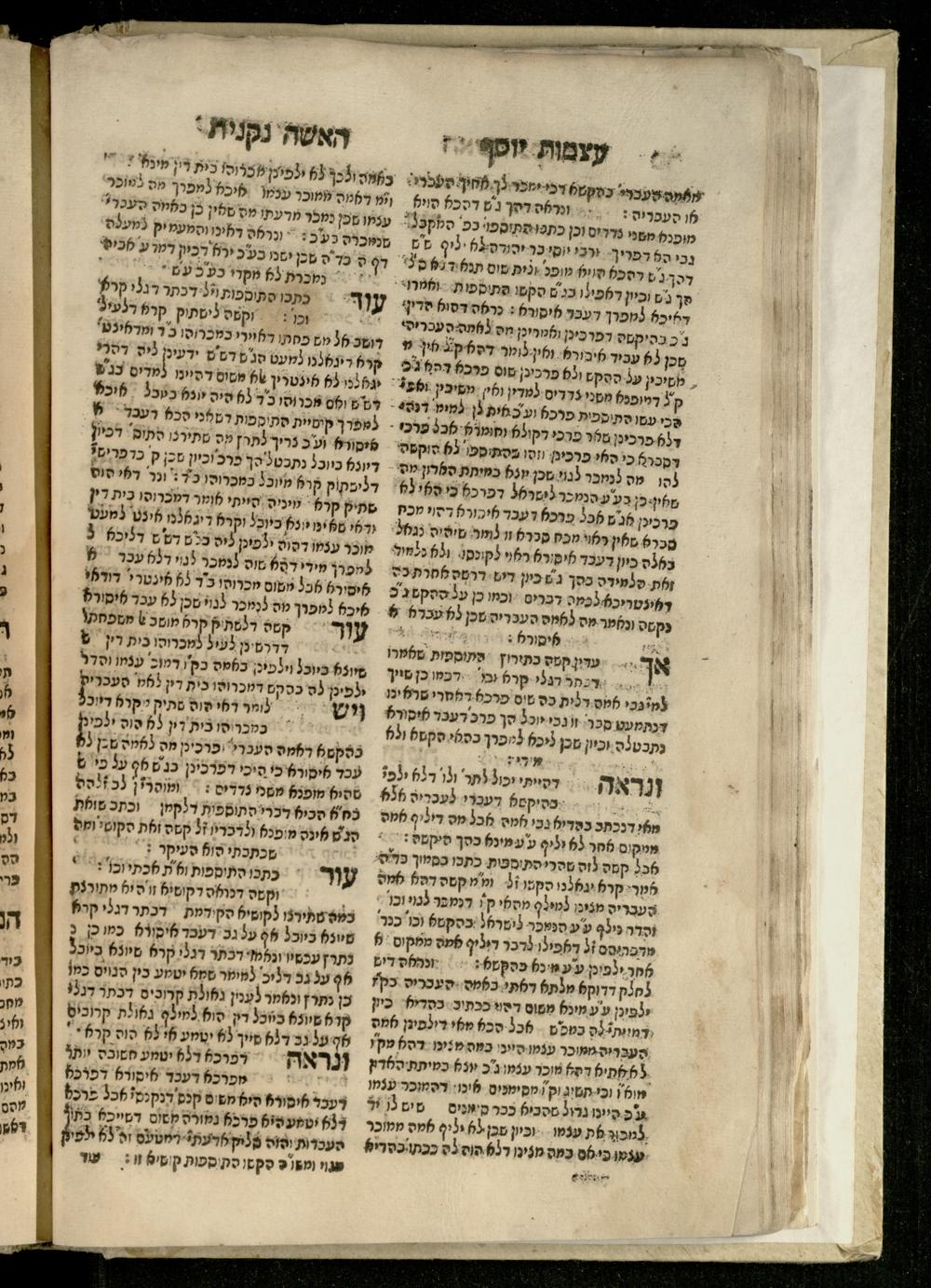 Sefer ʿAtsmot Yosef : ṿe-hu beʾur kelalim meḥudashim she-ha-Torah nidreshet ba-hem ... : gam ba ha-beʾur be-ʿiyun u-ve-filpul nimrats be-masekhet Ḳidushin mi-teḥilatah ʿad sofah ... gam ... be-sugyat Parah ṿe-Raḥel be-p. Kol ha-baśar u-ve-sof pereḳ Ketsad ha-regel ... / ḥibartiṿ ṿe-gam yisadtiṿ ani ha-tsaʿir Yosef ben Yitsḥaḳ ... n. ʿEzra ...ספר עצמות יוסף : והוא ביאור כללים מחודשים שהתורה נדרשת בהם ... : גם בא הבאור בעיון בעיון ובפלפול נמרץ במסכת קידושין מתחילתה עד סופה ... גם ... בסוגיית פרה ורחל בפ׳ כל הבשר ובסוף פרק כיצד הרגל ... / חברתיו וגם יסדתיו אני הצעיר יוסף בן יצחק ... ן׳ עזרא ...