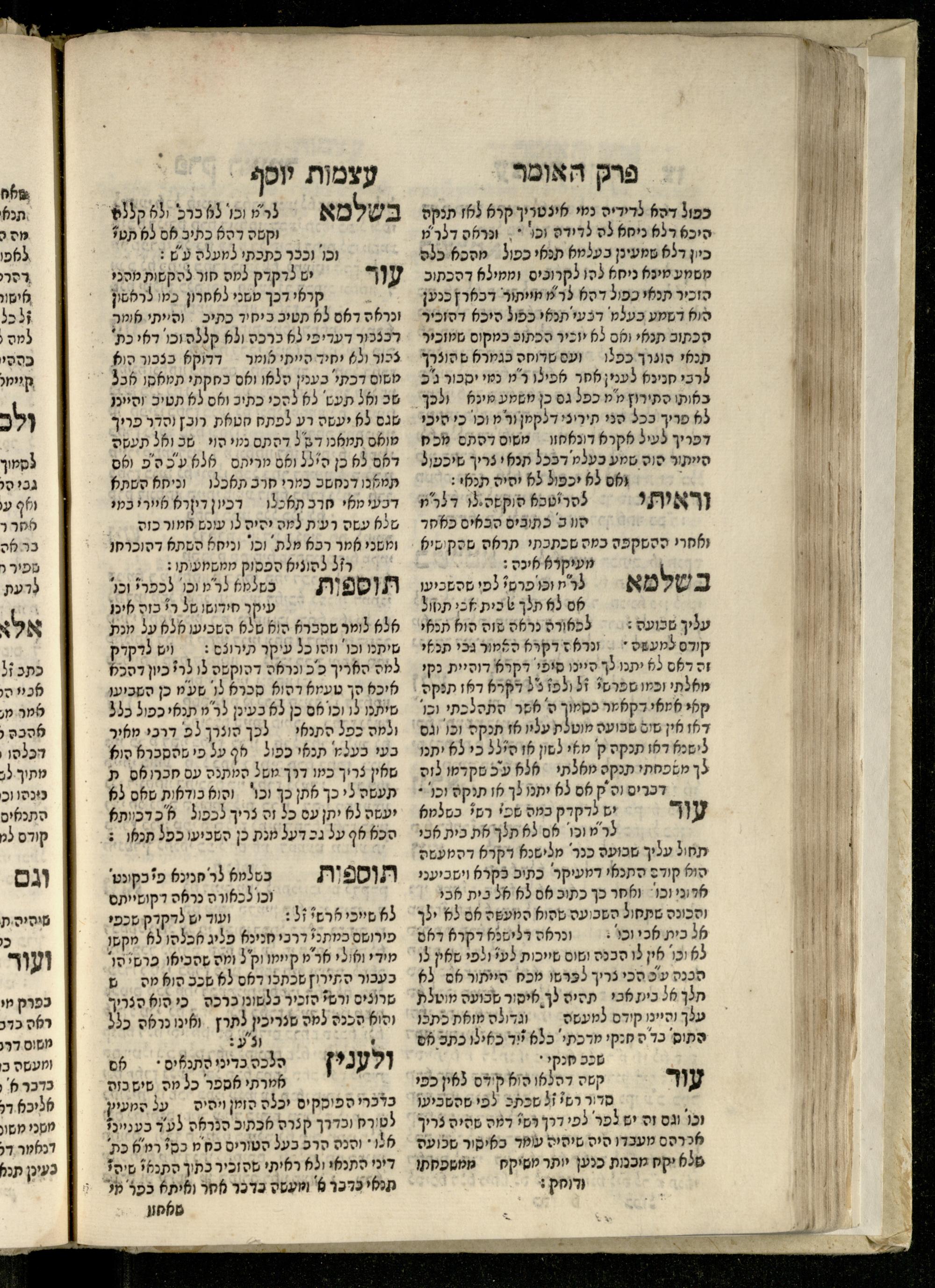 Sefer ʿAtsmot Yosef : ṿe-hu beʾur kelalim meḥudashim she-ha-Torah nidreshet ba-hem ... : gam ba ha-beʾur be-ʿiyun u-ve-filpul nimrats be-masekhet Ḳidushin mi-teḥilatah ʿad sofah ... gam ... be-sugyat Parah ṿe-Raḥel be-p. Kol ha-baśar u-ve-sof pereḳ Ketsad ha-regel ... / ḥibartiṿ ṿe-gam yisadtiṿ ani ha-tsaʿir Yosef ben Yitsḥaḳ ... n. ʿEzra ...ספר עצמות יוסף : והוא ביאור כללים מחודשים שהתורה נדרשת בהם ... : גם בא הבאור בעיון בעיון ובפלפול נמרץ במסכת קידושין מתחילתה עד סופה ... גם ... בסוגיית פרה ורחל בפ׳ כל הבשר ובסוף פרק כיצד הרגל ... / חברתיו וגם יסדתיו אני הצעיר יוסף בן יצחק ... ן׳ עזרא ...