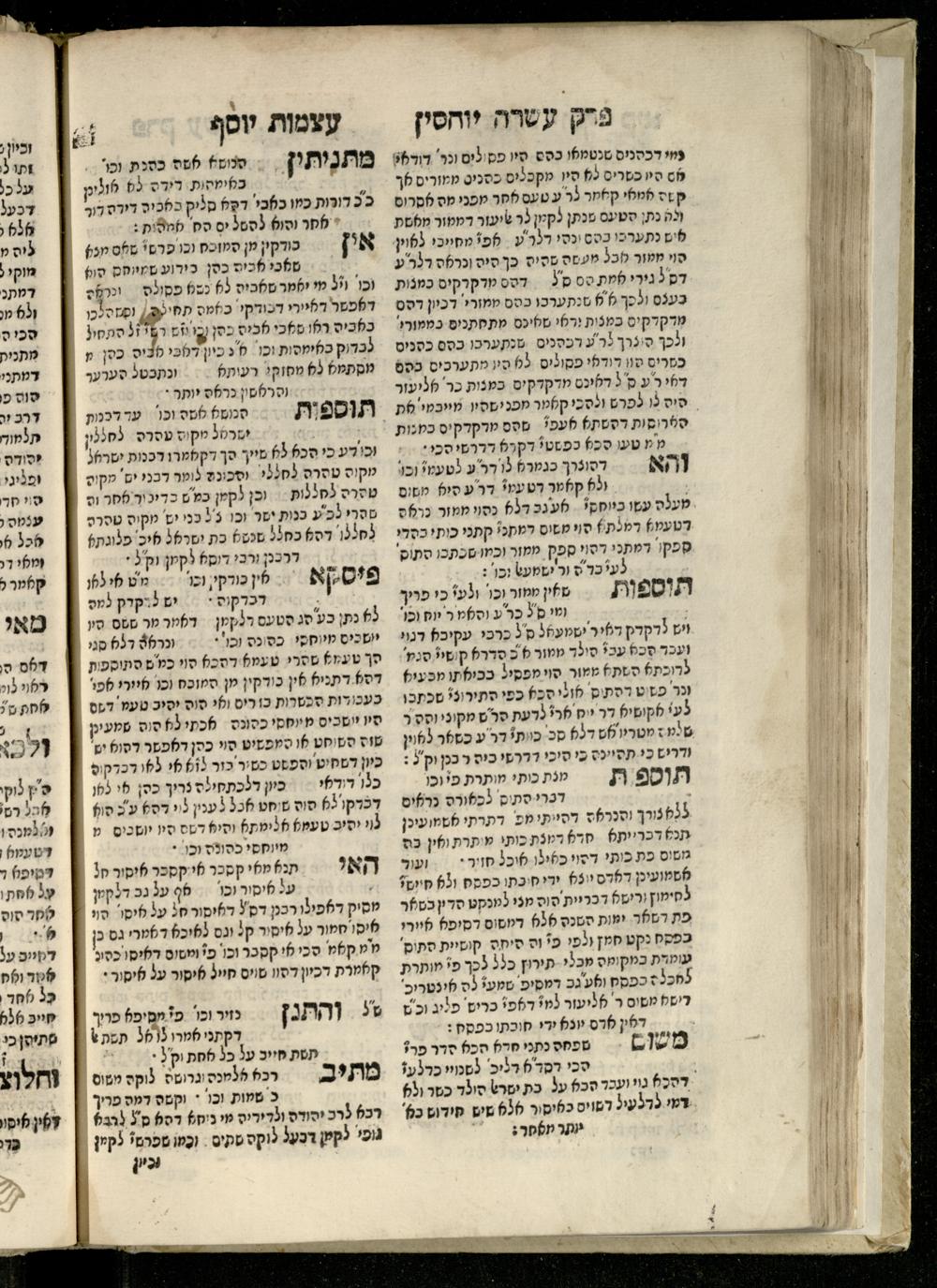 Sefer ʿAtsmot Yosef : ṿe-hu beʾur kelalim meḥudashim she-ha-Torah nidreshet ba-hem ... : gam ba ha-beʾur be-ʿiyun u-ve-filpul nimrats be-masekhet Ḳidushin mi-teḥilatah ʿad sofah ... gam ... be-sugyat Parah ṿe-Raḥel be-p. Kol ha-baśar u-ve-sof pereḳ Ketsad ha-regel ... / ḥibartiṿ ṿe-gam yisadtiṿ ani ha-tsaʿir Yosef ben Yitsḥaḳ ... n. ʿEzra ...ספר עצמות יוסף : והוא ביאור כללים מחודשים שהתורה נדרשת בהם ... : גם בא הבאור בעיון בעיון ובפלפול נמרץ במסכת קידושין מתחילתה עד סופה ... גם ... בסוגיית פרה ורחל בפ׳ כל הבשר ובסוף פרק כיצד הרגל ... / חברתיו וגם יסדתיו אני הצעיר יוסף בן יצחק ... ן׳ עזרא ...