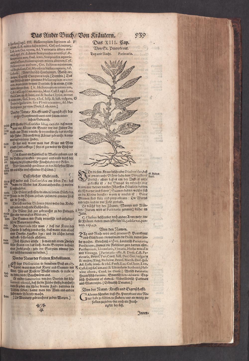 D. Jacobi Theodori Tabernaemontani, Neu vollkommen Kräuter-Buch : Darinnen Uber 3000. Kräuter/ mit schönen und kunstlichen Figuren/ auch deren Underscheid und Würckung/ samt ihren Namen in mancherley Sprachen/ beschrieben: Desgleichen auch/ wie dieselbige in allerhand Kranckheiten/ beyde der Menschen und des Viehs/ sollen angewendet und gebraucht werden/ angezeigt wird. Erstlichen durch Casparum Bauhinum D. und Profess. Basil. mit vielen neuen Figuren/ nutzlichen Artzneyen/ und anderem/ mit sonderem Fleis gebesseret/ Zum Andern Durch Hieronymum Bauhinum D. und Profess. Basil. mit sehr nutzlichen Marginalien, Synonimis, neuen Registeren und anderem vermehrt
