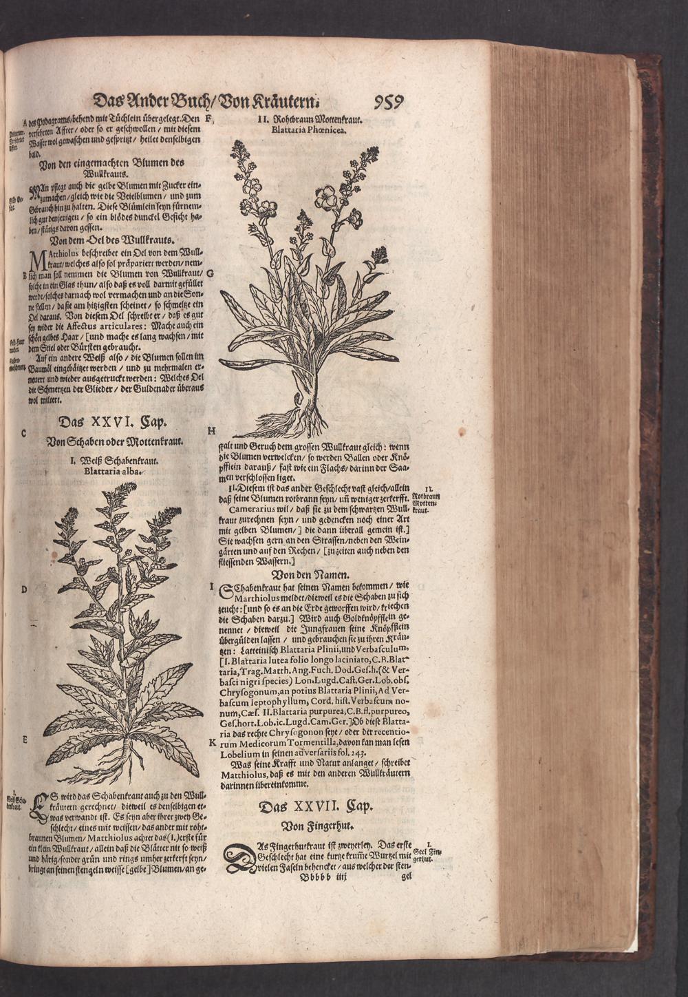 D. Jacobi Theodori Tabernaemontani, Neu vollkommen Kräuter-Buch : Darinnen Uber 3000. Kräuter/ mit schönen und kunstlichen Figuren/ auch deren Underscheid und Würckung/ samt ihren Namen in mancherley Sprachen/ beschrieben: Desgleichen auch/ wie dieselbige in allerhand Kranckheiten/ beyde der Menschen und des Viehs/ sollen angewendet und gebraucht werden/ angezeigt wird. Erstlichen durch Casparum Bauhinum D. und Profess. Basil. mit vielen neuen Figuren/ nutzlichen Artzneyen/ und anderem/ mit sonderem Fleis gebesseret/ Zum Andern Durch Hieronymum Bauhinum D. und Profess. Basil. mit sehr nutzlichen Marginalien, Synonimis, neuen Registeren und anderem vermehrt