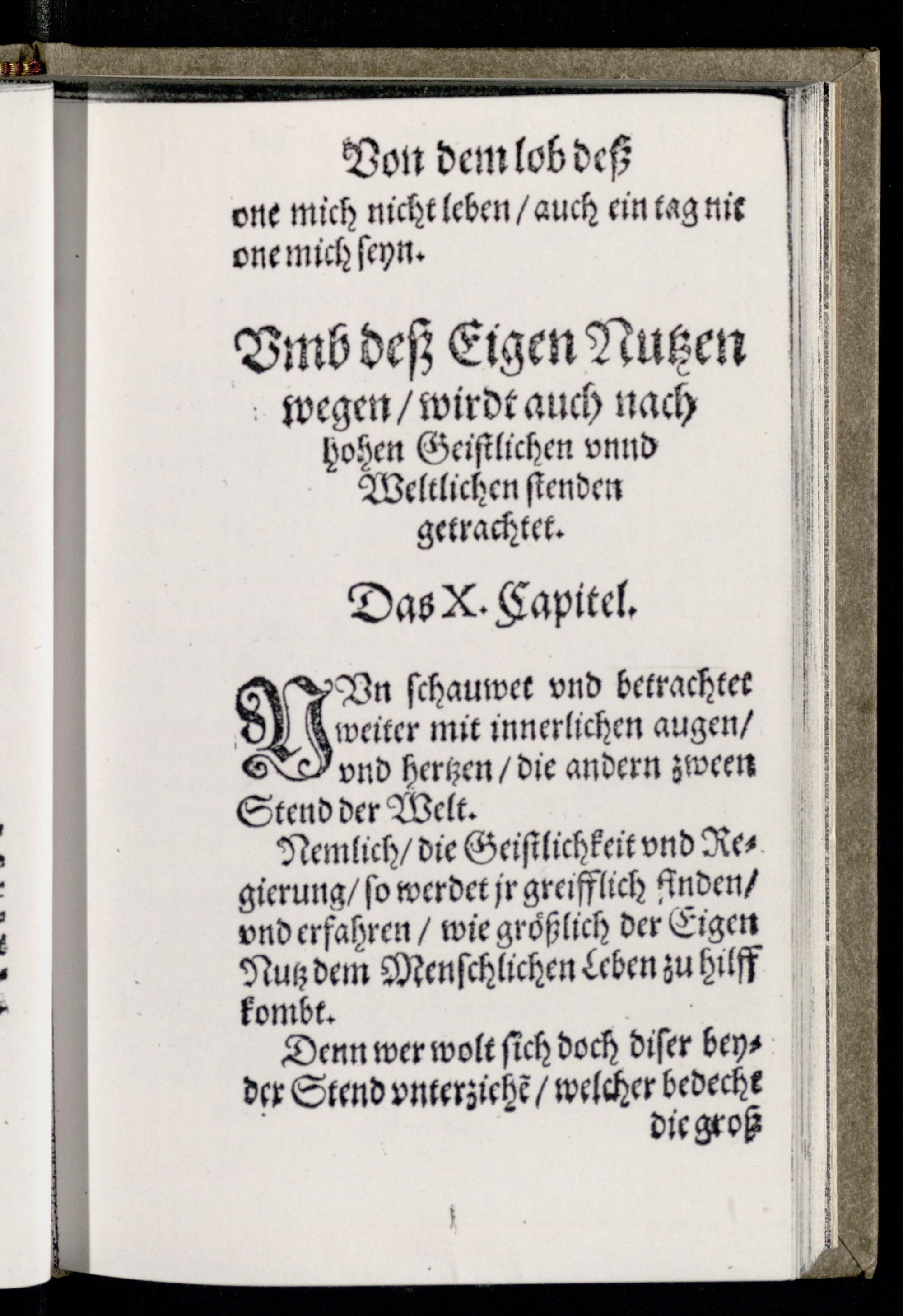 Umd deß Eigen Nutzen wegen/ wirdt auch nach hohen Geistlichen unnd Weltlichen stenden getrachtet. Das X. Capitel.