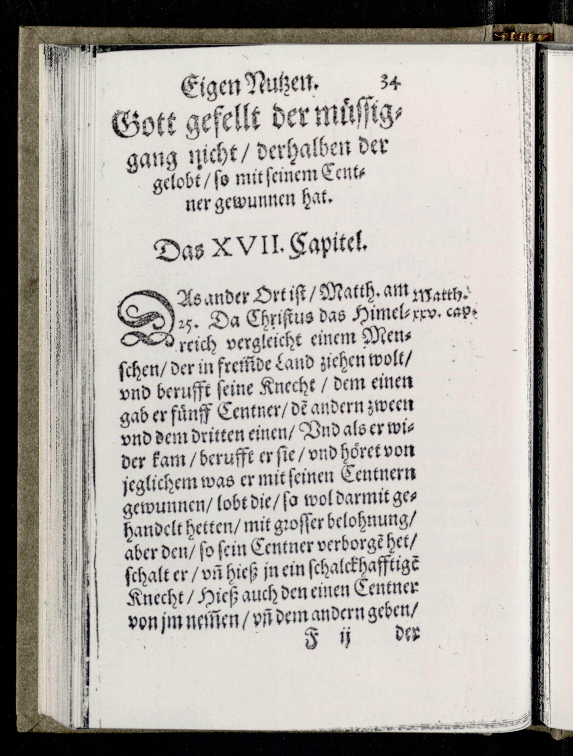 Gott gefellt der müssiggang nicht/ derhalben der gelobt/ so mit seinem Centner gewunnen hat. Das XVII. Capitel.