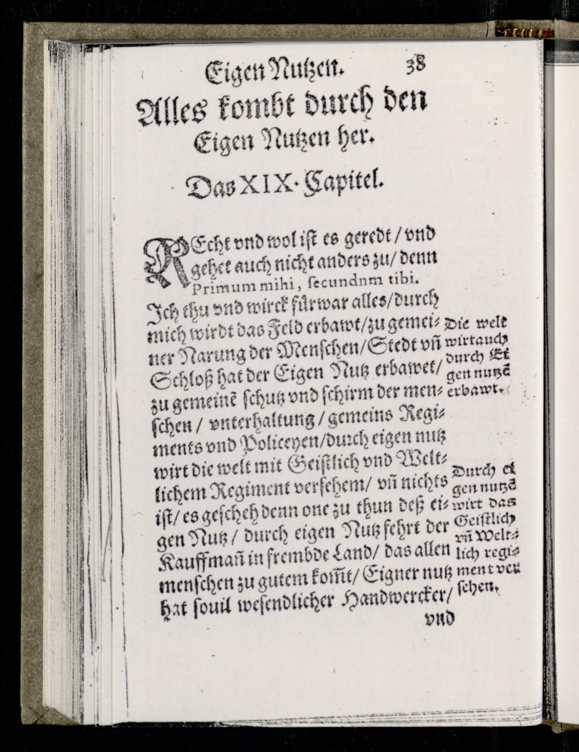Alles kombt durch den Eigen Nutzen her. Das XIX. Capitel.