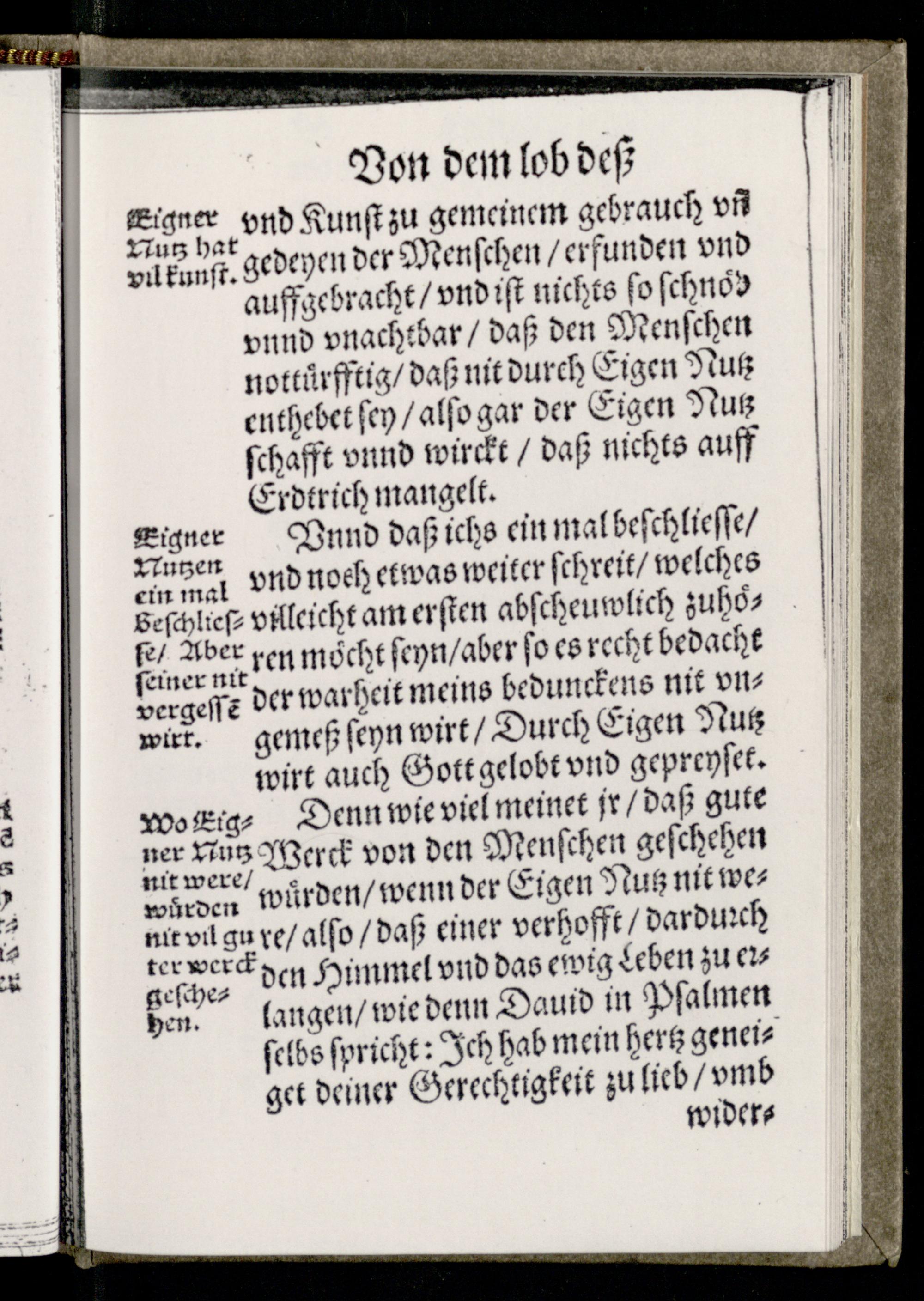 Von dem Lob deß Eigen Nutzen ... Mit vil schönen Exempeln vnd Historien auß heyliger Göttlicher Schrifft zusammen gezogen, Durch Leonhard Fronsperger an tag geben