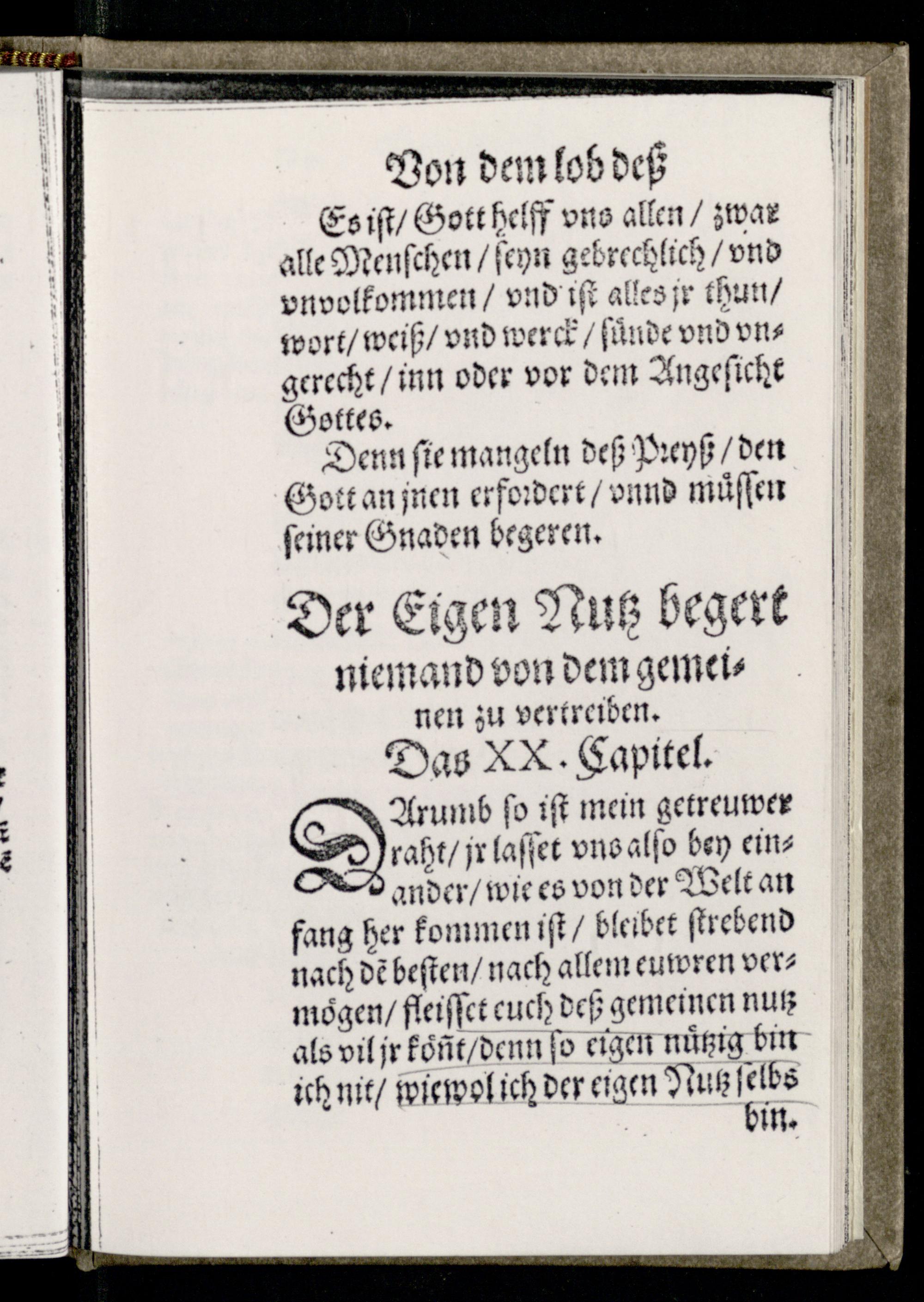 Der Eigen Nutz begert niemand von dem gemeinen zu vertreiben. Das XX. Capitel.