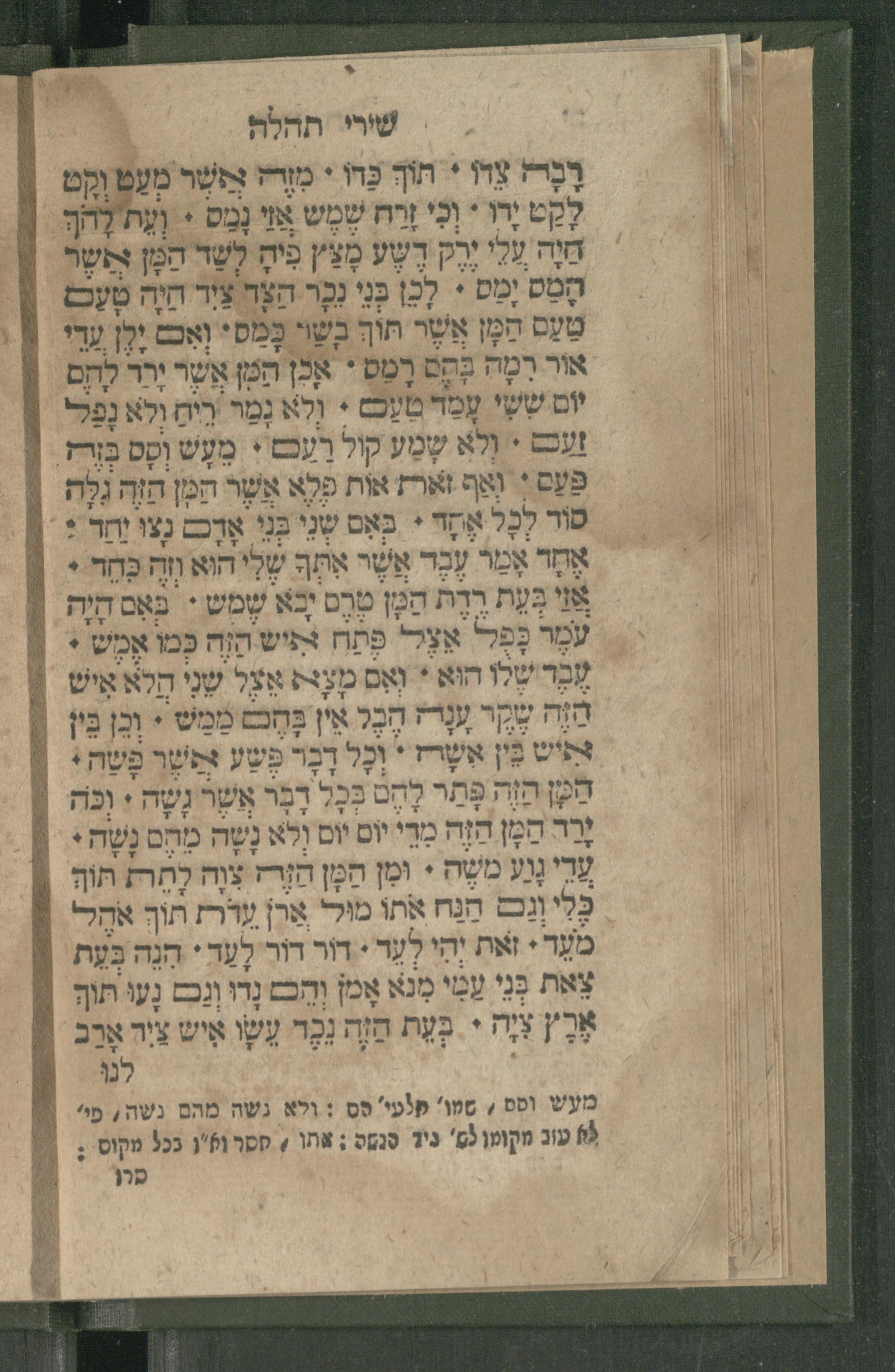 Sefer Shire tehilah le-H. : devar yom be-yomo ... / ... Zeʾev Ṿolf Bukhner mi-ḳ.ḳ Brod .. ben Daṿid ...ספר שירי תהלה לה׳ʹ : ... דבר יום ביומו / ... זאב וואלף בוכנר מק"ק בראד בן ... דוד
