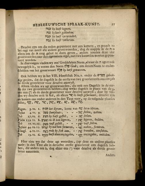 De bruidschat Israels, of onderwys der Hebreeuwsche spraakkunst : met twee Bygevoegde Woordenboeken / opgestelt door Eleasar Soesman. Voorzien met een Getuigschrift van den Hooggeleerden Heer Cornelius Hugo Vonk