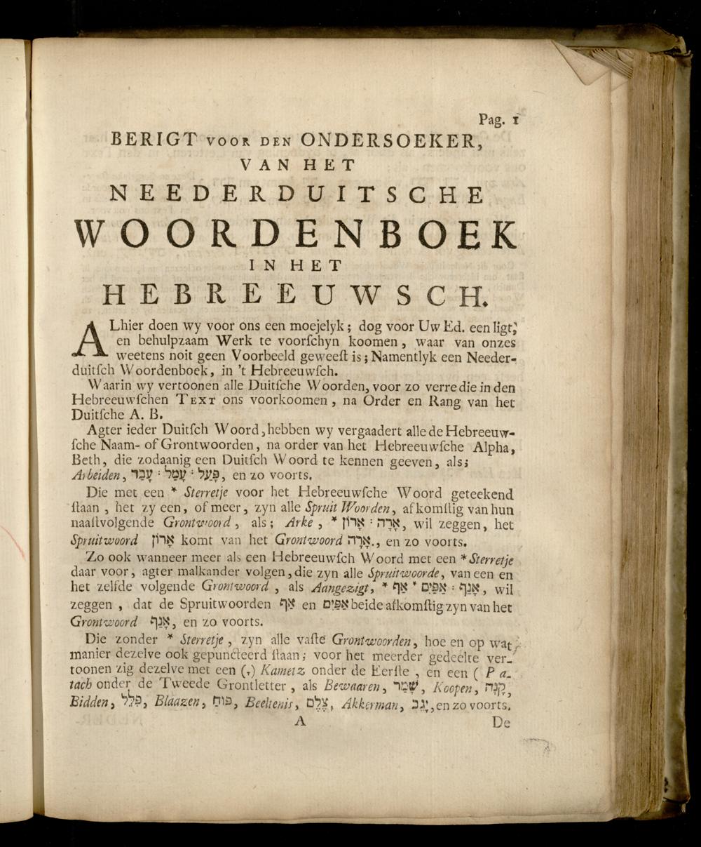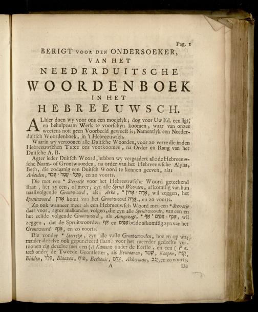 De bruidschat Israels, of onderwys der Hebreeuwsche spraakkunst : met twee Bygevoegde Woordenboeken / opgestelt door Eleasar Soesman. Voorzien met een Getuigschrift van den Hooggeleerden Heer Cornelius Hugo Vonk