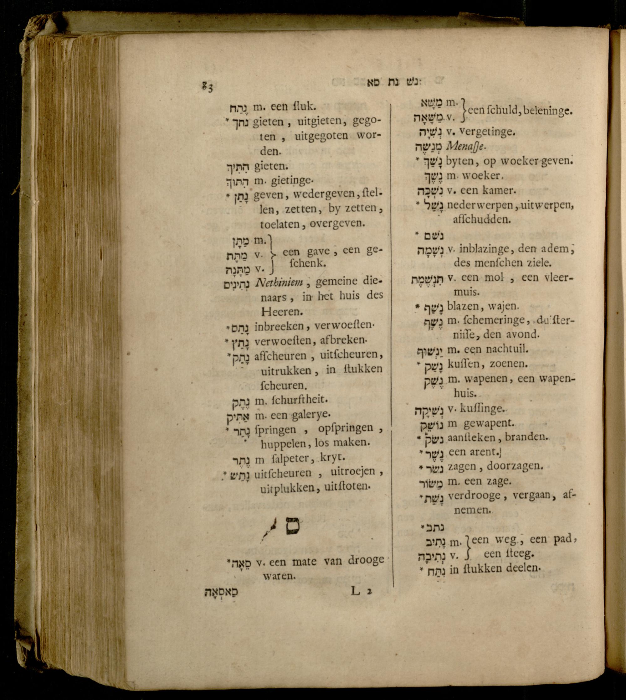 De bruidschat Israels, of onderwys der Hebreeuwsche spraakkunst : met twee Bygevoegde Woordenboeken / opgestelt door Eleasar Soesman. Voorzien met een Getuigschrift van den Hooggeleerden Heer Cornelius Hugo Vonk