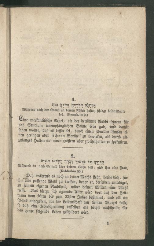 Rabbinnische [!] Anthologie, oder Sammlung von Erzählungen, Sprichwörtern, Weisheitsregeln, Lehren und Meinungen der alten Hebräer ; Ein unterhaltendes und zugleich belehrendes Buch für Jedermann / Aus den Quellen entnommen, übersetzt und erläutert und mit den nöthigen Registern versehen von R[aphael] J[acob] Fürstenthal