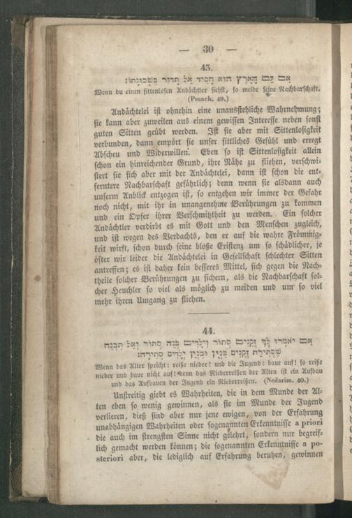 Rabbinnische [!] Anthologie, oder Sammlung von Erzählungen, Sprichwörtern, Weisheitsregeln, Lehren und Meinungen der alten Hebräer ; Ein unterhaltendes und zugleich belehrendes Buch für Jedermann / Aus den Quellen entnommen, übersetzt und erläutert und mit den nöthigen Registern versehen von R[aphael] J[acob] Fürstenthal