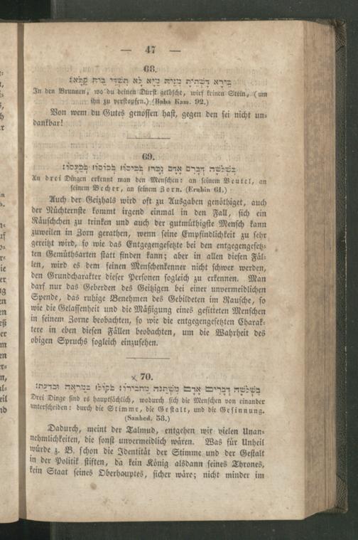 Rabbinnische [!] Anthologie, oder Sammlung von Erzählungen, Sprichwörtern, Weisheitsregeln, Lehren und Meinungen der alten Hebräer ; Ein unterhaltendes und zugleich belehrendes Buch für Jedermann / Aus den Quellen entnommen, übersetzt und erläutert und mit den nöthigen Registern versehen von R[aphael] J[acob] Fürstenthal