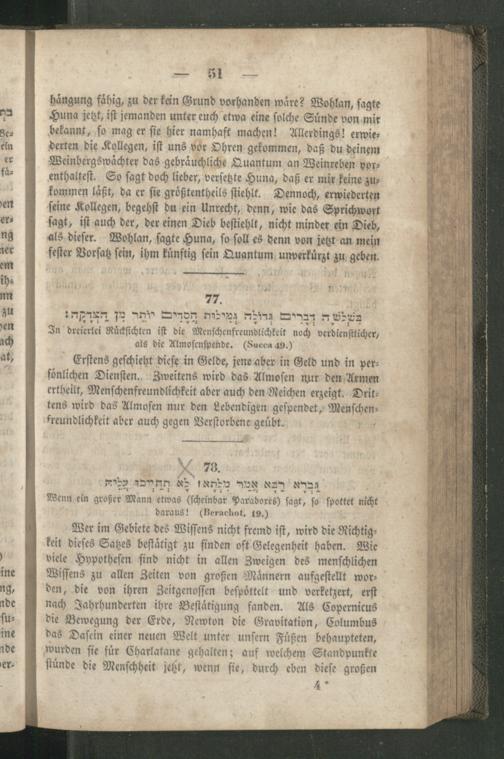 Rabbinnische [!] Anthologie, oder Sammlung von Erzählungen, Sprichwörtern, Weisheitsregeln, Lehren und Meinungen der alten Hebräer ; Ein unterhaltendes und zugleich belehrendes Buch für Jedermann / Aus den Quellen entnommen, übersetzt und erläutert und mit den nöthigen Registern versehen von R[aphael] J[acob] Fürstenthal