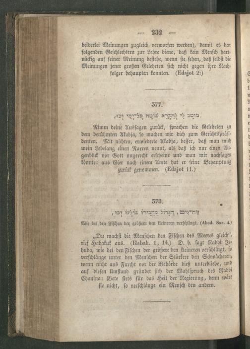 Rabbinnische [!] Anthologie, oder Sammlung von Erzählungen, Sprichwörtern, Weisheitsregeln, Lehren und Meinungen der alten Hebräer ; Ein unterhaltendes und zugleich belehrendes Buch für Jedermann / Aus den Quellen entnommen, übersetzt und erläutert und mit den nöthigen Registern versehen von R[aphael] J[acob] Fürstenthal