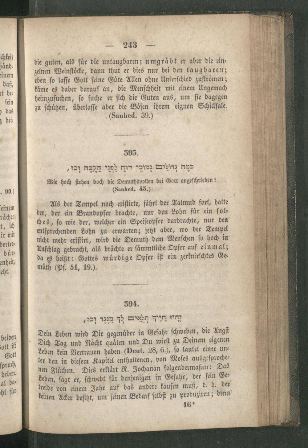 Rabbinnische [!] Anthologie, oder Sammlung von Erzählungen, Sprichwörtern, Weisheitsregeln, Lehren und Meinungen der alten Hebräer ; Ein unterhaltendes und zugleich belehrendes Buch für Jedermann / Aus den Quellen entnommen, übersetzt und erläutert und mit den nöthigen Registern versehen von R[aphael] J[acob] Fürstenthal