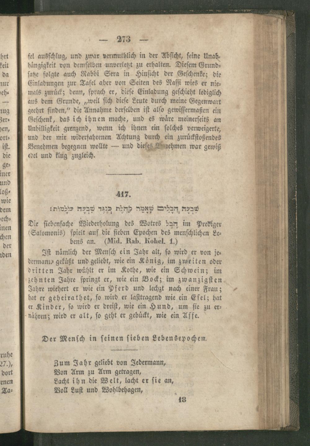 Rabbinnische [!] Anthologie, oder Sammlung von Erzählungen, Sprichwörtern, Weisheitsregeln, Lehren und Meinungen der alten Hebräer ; Ein unterhaltendes und zugleich belehrendes Buch für Jedermann / Aus den Quellen entnommen, übersetzt und erläutert und mit den nöthigen Registern versehen von R[aphael] J[acob] Fürstenthal