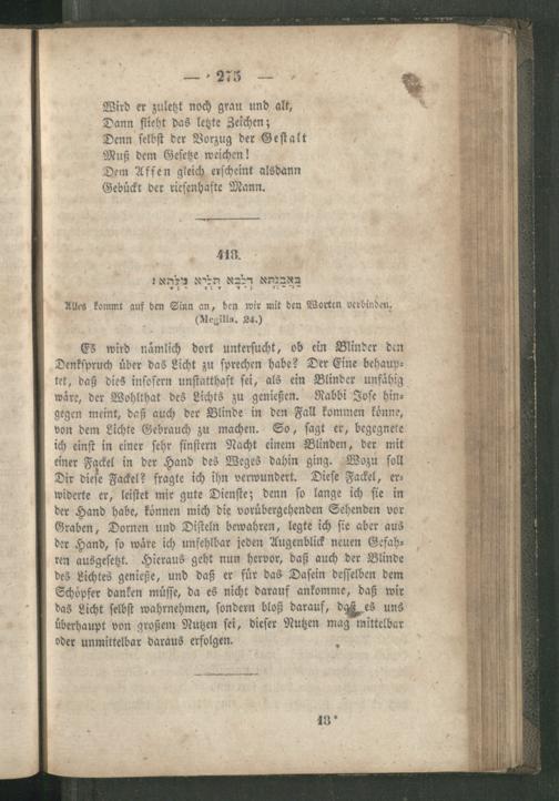 Rabbinnische [!] Anthologie, oder Sammlung von Erzählungen, Sprichwörtern, Weisheitsregeln, Lehren und Meinungen der alten Hebräer ; Ein unterhaltendes und zugleich belehrendes Buch für Jedermann / Aus den Quellen entnommen, übersetzt und erläutert und mit den nöthigen Registern versehen von R[aphael] J[acob] Fürstenthal