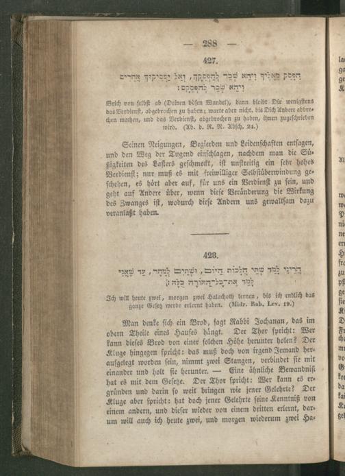 Rabbinnische [!] Anthologie, oder Sammlung von Erzählungen, Sprichwörtern, Weisheitsregeln, Lehren und Meinungen der alten Hebräer ; Ein unterhaltendes und zugleich belehrendes Buch für Jedermann / Aus den Quellen entnommen, übersetzt und erläutert und mit den nöthigen Registern versehen von R[aphael] J[acob] Fürstenthal