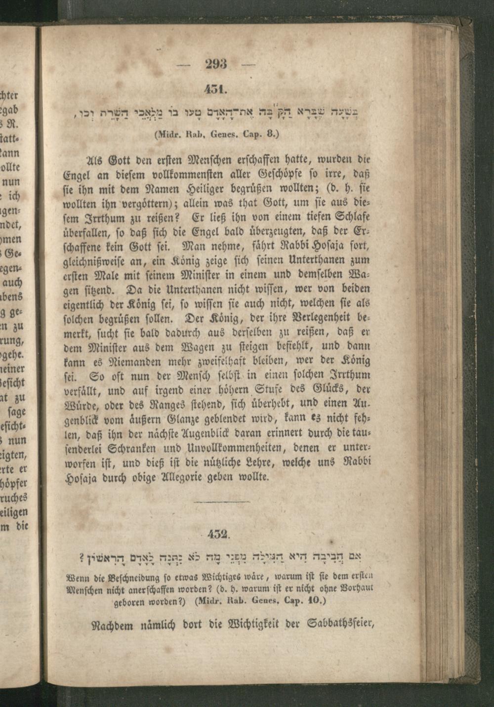Rabbinnische [!] Anthologie, oder Sammlung von Erzählungen, Sprichwörtern, Weisheitsregeln, Lehren und Meinungen der alten Hebräer ; Ein unterhaltendes und zugleich belehrendes Buch für Jedermann / Aus den Quellen entnommen, übersetzt und erläutert und mit den nöthigen Registern versehen von R[aphael] J[acob] Fürstenthal