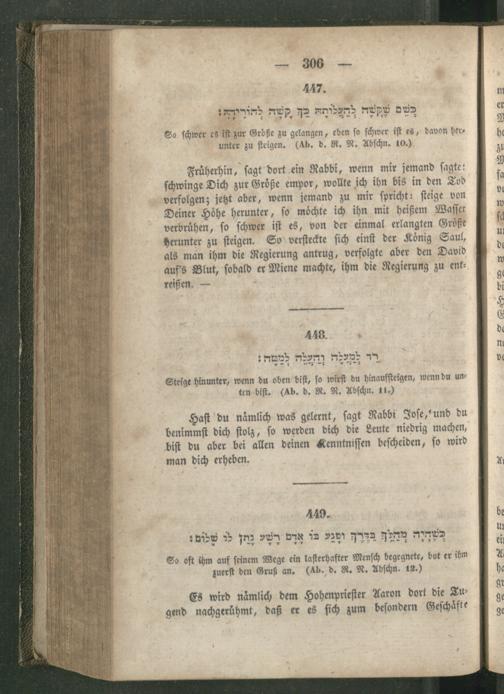 Rabbinnische [!] Anthologie, oder Sammlung von Erzählungen, Sprichwörtern, Weisheitsregeln, Lehren und Meinungen der alten Hebräer ; Ein unterhaltendes und zugleich belehrendes Buch für Jedermann / Aus den Quellen entnommen, übersetzt und erläutert und mit den nöthigen Registern versehen von R[aphael] J[acob] Fürstenthal