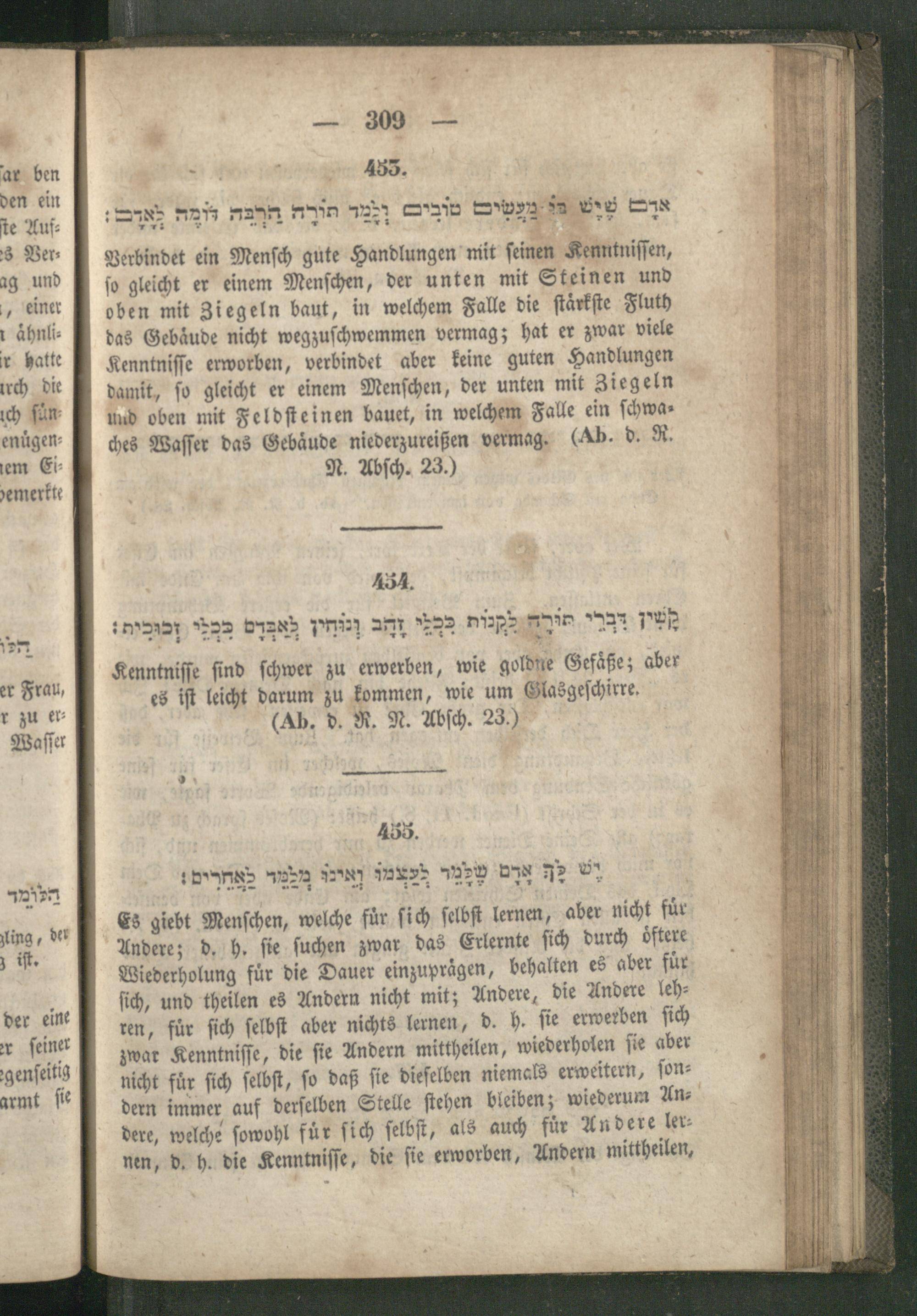 Rabbinnische [!] Anthologie, oder Sammlung von Erzählungen, Sprichwörtern, Weisheitsregeln, Lehren und Meinungen der alten Hebräer ; Ein unterhaltendes und zugleich belehrendes Buch für Jedermann / Aus den Quellen entnommen, übersetzt und erläutert und mit den nöthigen Registern versehen von R[aphael] J[acob] Fürstenthal