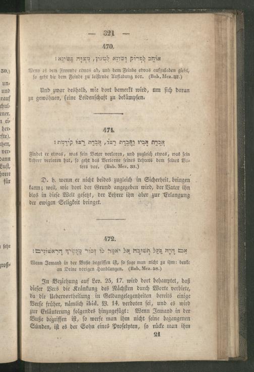 Rabbinnische [!] Anthologie, oder Sammlung von Erzählungen, Sprichwörtern, Weisheitsregeln, Lehren und Meinungen der alten Hebräer ; Ein unterhaltendes und zugleich belehrendes Buch für Jedermann / Aus den Quellen entnommen, übersetzt und erläutert und mit den nöthigen Registern versehen von R[aphael] J[acob] Fürstenthal