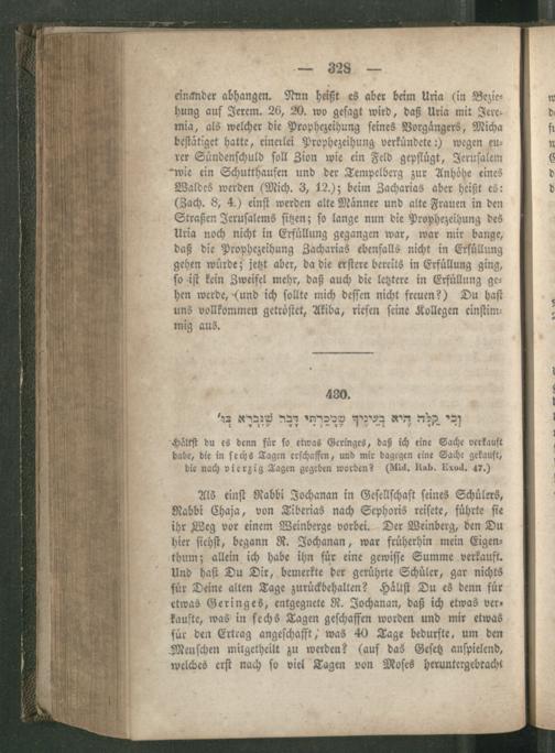 Rabbinnische [!] Anthologie, oder Sammlung von Erzählungen, Sprichwörtern, Weisheitsregeln, Lehren und Meinungen der alten Hebräer ; Ein unterhaltendes und zugleich belehrendes Buch für Jedermann / Aus den Quellen entnommen, übersetzt und erläutert und mit den nöthigen Registern versehen von R[aphael] J[acob] Fürstenthal