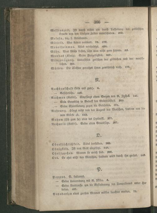 Rabbinnische [!] Anthologie, oder Sammlung von Erzählungen, Sprichwörtern, Weisheitsregeln, Lehren und Meinungen der alten Hebräer ; Ein unterhaltendes und zugleich belehrendes Buch für Jedermann / Aus den Quellen entnommen, übersetzt und erläutert und mit den nöthigen Registern versehen von R[aphael] J[acob] Fürstenthal