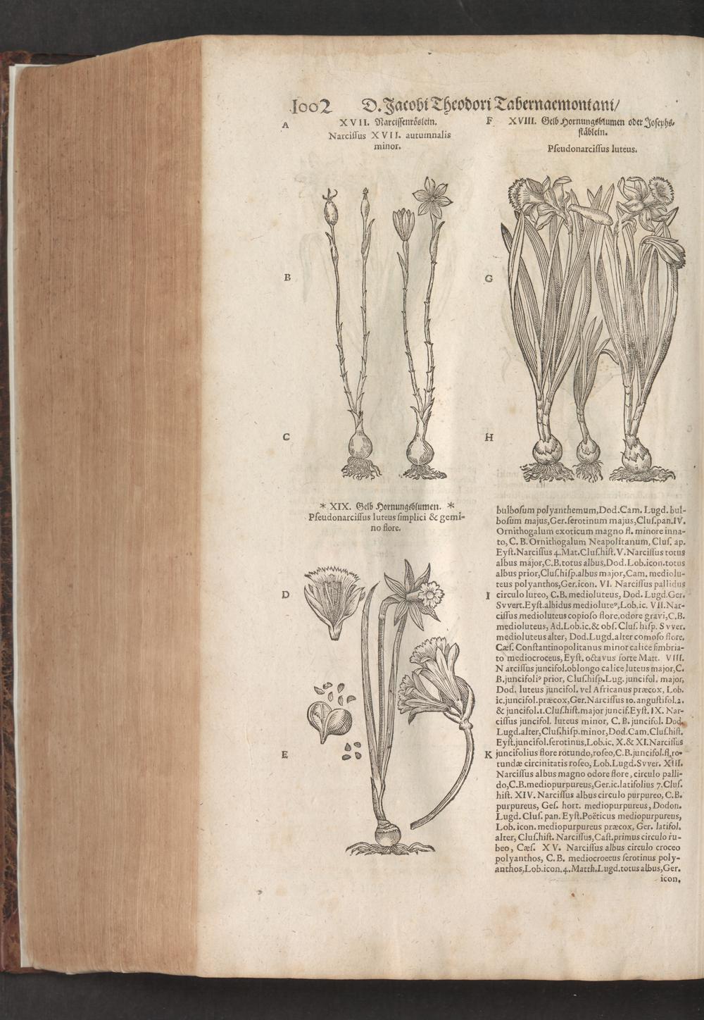 D. Jacobi Theodori Tabernaemontani, Neu vollkommen Kräuter-Buch : Darinnen Uber 3000. Kräuter/ mit schönen und kunstlichen Figuren/ auch deren Underscheid und Würckung/ samt ihren Namen in mancherley Sprachen/ beschrieben: Desgleichen auch/ wie dieselbige in allerhand Kranckheiten/ beyde der Menschen und des Viehs/ sollen angewendet und gebraucht werden/ angezeigt wird. Erstlichen durch Casparum Bauhinum D. und Profess. Basil. mit vielen neuen Figuren/ nutzlichen Artzneyen/ und anderem/ mit sonderem Fleis gebesseret/ Zum Andern Durch Hieronymum Bauhinum D. und Profess. Basil. mit sehr nutzlichen Marginalien, Synonimis, neuen Registeren und anderem vermehrt