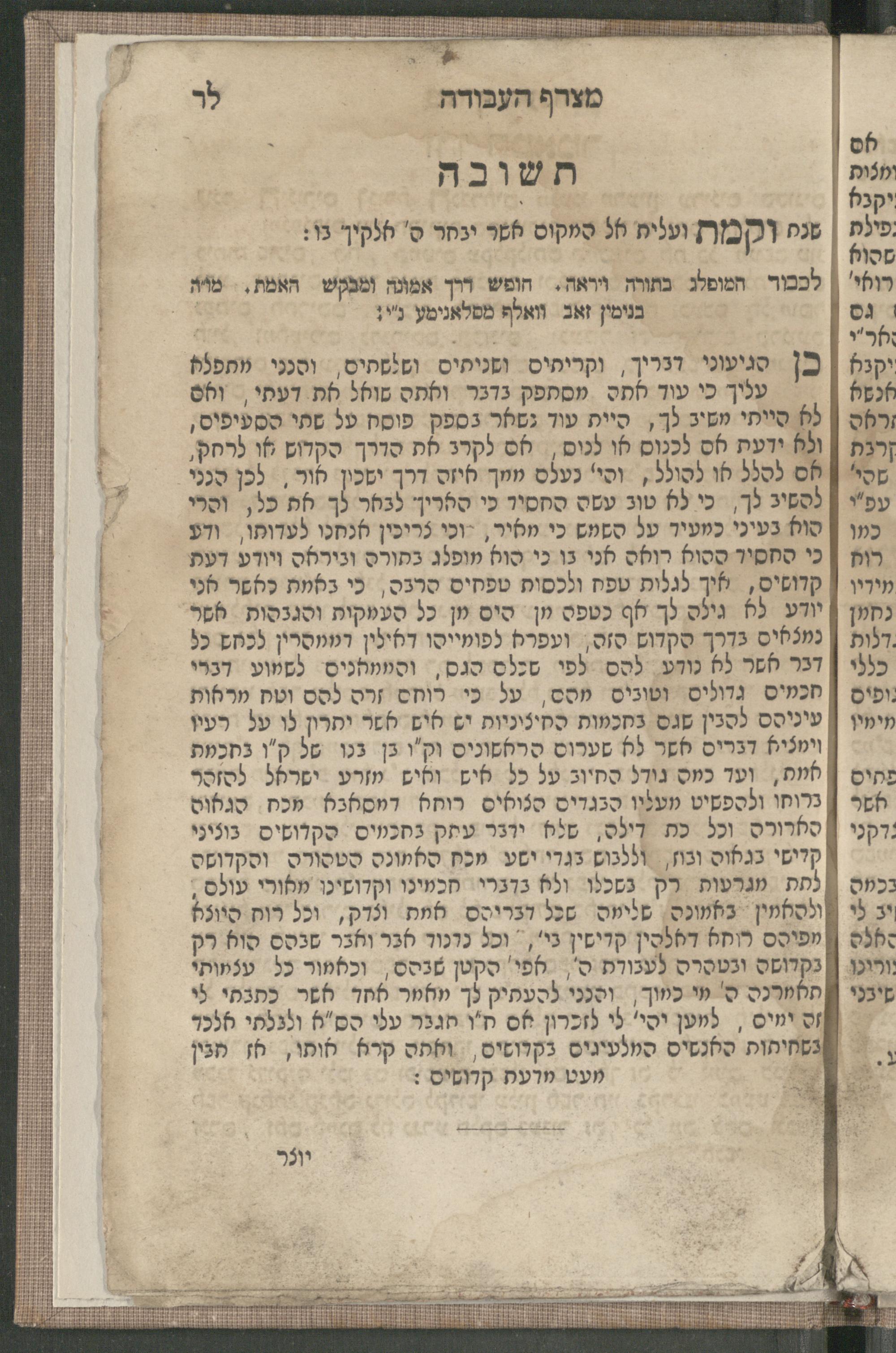 Sefer matsref ha-ʿavodah : hu ṿikuaḥ asher hayah zeh ke-shivʿim u-shetayim shanah ben shene gedole ha-dor, ha-eḥad mi-ʿedat ha-Ḥasidim, ṿe-ha-sheni mi-ʿedat ha-Minagedim (!) ... / hotsetiṿ le-or paʿam rishonah Dov Beʿer b.l.a.a. Shalom ha-Leṿi Segaloṿitsספר מצרף העבודה : ... (!) הוא ויכוח אשר היה זה כשבעים ושתים שנה בין שני גדולי הדור, האחד מעדת החסידים, והשני מעדת המנגדים / הוצאתיו לאור פעם ראשונה דוב בער בלא"א שלום הלוי סעגאלאוויץ