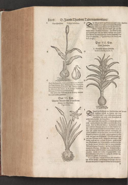 D. Jacobi Theodori Tabernaemontani, Neu vollkommen Kräuter-Buch : Darinnen Uber 3000. Kräuter/ mit schönen und kunstlichen Figuren/ auch deren Underscheid und Würckung/ samt ihren Namen in mancherley Sprachen/ beschrieben: Desgleichen auch/ wie dieselbige in allerhand Kranckheiten/ beyde der Menschen und des Viehs/ sollen angewendet und gebraucht werden/ angezeigt wird. Erstlichen durch Casparum Bauhinum D. und Profess. Basil. mit vielen neuen Figuren/ nutzlichen Artzneyen/ und anderem/ mit sonderem Fleis gebesseret/ Zum Andern Durch Hieronymum Bauhinum D. und Profess. Basil. mit sehr nutzlichen Marginalien, Synonimis, neuen Registeren und anderem vermehrt