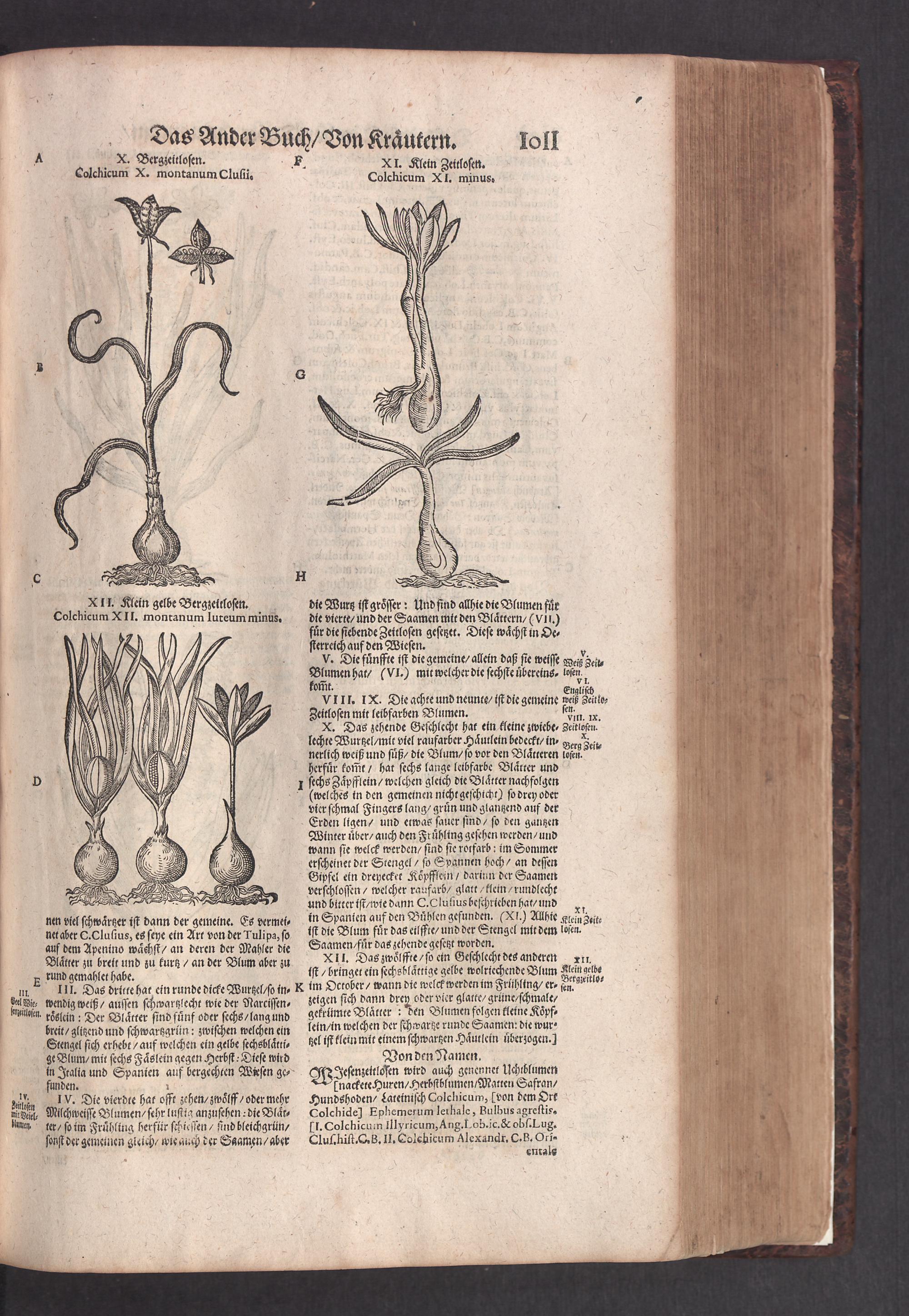 D. Jacobi Theodori Tabernaemontani, Neu vollkommen Kräuter-Buch : Darinnen Uber 3000. Kräuter/ mit schönen und kunstlichen Figuren/ auch deren Underscheid und Würckung/ samt ihren Namen in mancherley Sprachen/ beschrieben: Desgleichen auch/ wie dieselbige in allerhand Kranckheiten/ beyde der Menschen und des Viehs/ sollen angewendet und gebraucht werden/ angezeigt wird. Erstlichen durch Casparum Bauhinum D. und Profess. Basil. mit vielen neuen Figuren/ nutzlichen Artzneyen/ und anderem/ mit sonderem Fleis gebesseret/ Zum Andern Durch Hieronymum Bauhinum D. und Profess. Basil. mit sehr nutzlichen Marginalien, Synonimis, neuen Registeren und anderem vermehrt