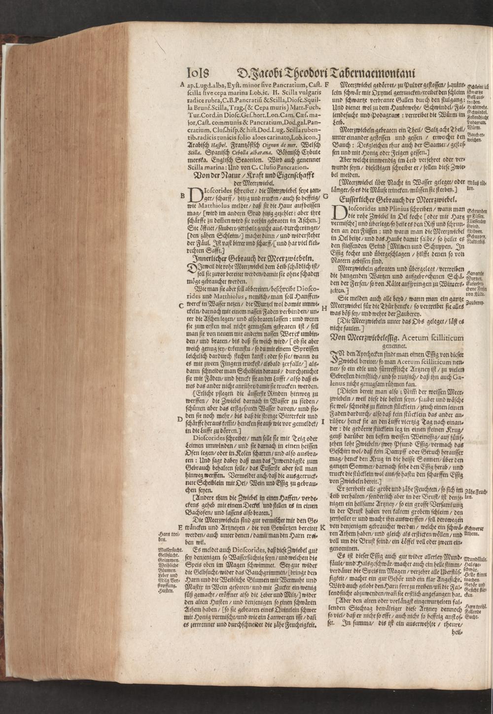 D. Jacobi Theodori Tabernaemontani, Neu vollkommen Kräuter-Buch : Darinnen Uber 3000. Kräuter/ mit schönen und kunstlichen Figuren/ auch deren Underscheid und Würckung/ samt ihren Namen in mancherley Sprachen/ beschrieben: Desgleichen auch/ wie dieselbige in allerhand Kranckheiten/ beyde der Menschen und des Viehs/ sollen angewendet und gebraucht werden/ angezeigt wird. Erstlichen durch Casparum Bauhinum D. und Profess. Basil. mit vielen neuen Figuren/ nutzlichen Artzneyen/ und anderem/ mit sonderem Fleis gebesseret/ Zum Andern Durch Hieronymum Bauhinum D. und Profess. Basil. mit sehr nutzlichen Marginalien, Synonimis, neuen Registeren und anderem vermehrt