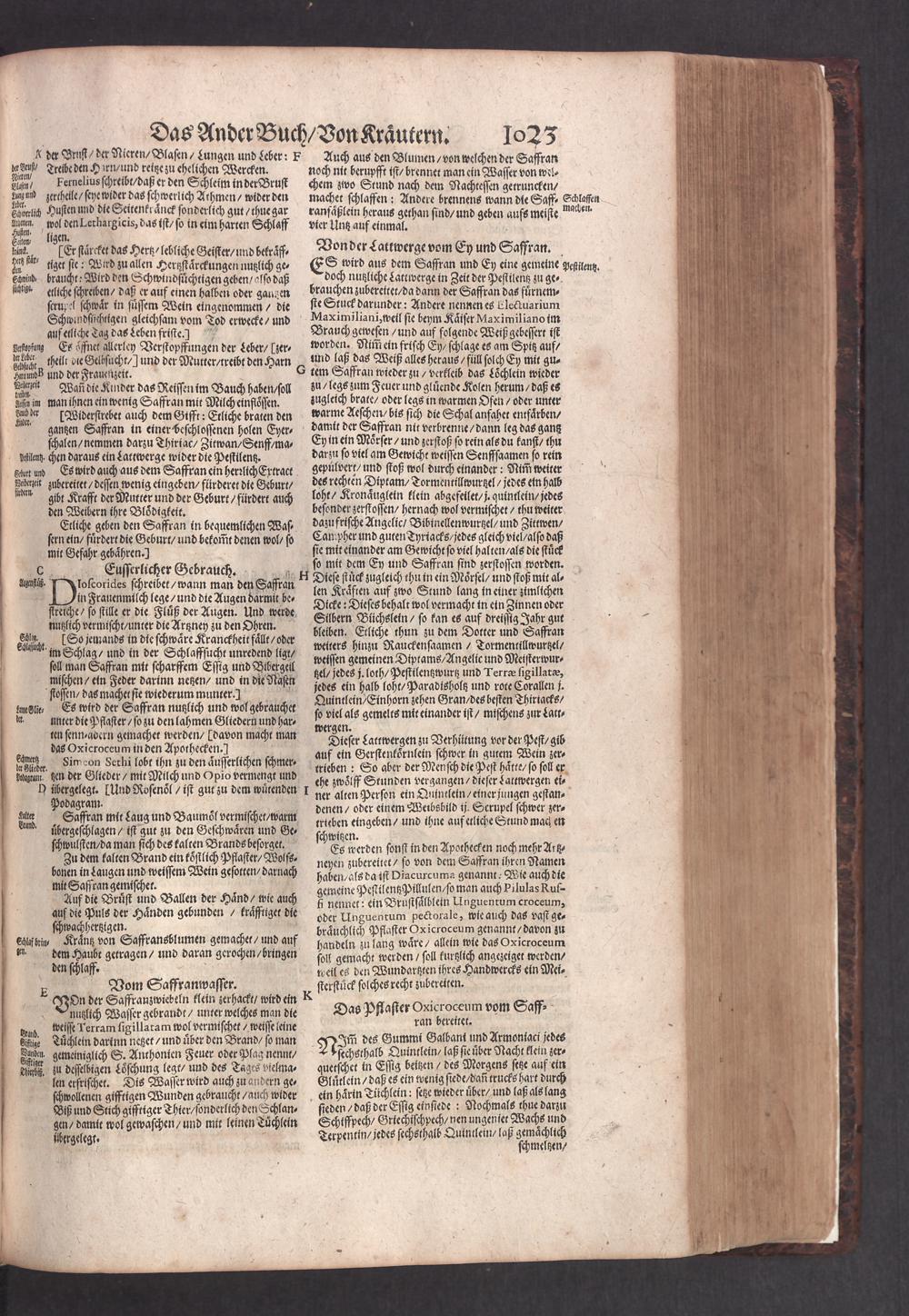 D. Jacobi Theodori Tabernaemontani, Neu vollkommen Kräuter-Buch : Darinnen Uber 3000. Kräuter/ mit schönen und kunstlichen Figuren/ auch deren Underscheid und Würckung/ samt ihren Namen in mancherley Sprachen/ beschrieben: Desgleichen auch/ wie dieselbige in allerhand Kranckheiten/ beyde der Menschen und des Viehs/ sollen angewendet und gebraucht werden/ angezeigt wird. Erstlichen durch Casparum Bauhinum D. und Profess. Basil. mit vielen neuen Figuren/ nutzlichen Artzneyen/ und anderem/ mit sonderem Fleis gebesseret/ Zum Andern Durch Hieronymum Bauhinum D. und Profess. Basil. mit sehr nutzlichen Marginalien, Synonimis, neuen Registeren und anderem vermehrt