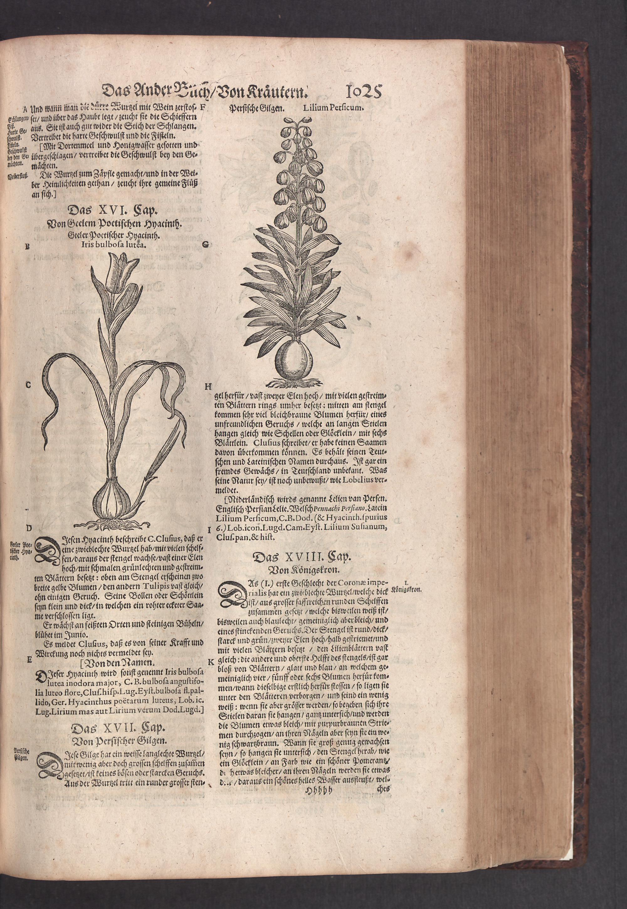 D. Jacobi Theodori Tabernaemontani, Neu vollkommen Kräuter-Buch : Darinnen Uber 3000. Kräuter/ mit schönen und kunstlichen Figuren/ auch deren Underscheid und Würckung/ samt ihren Namen in mancherley Sprachen/ beschrieben: Desgleichen auch/ wie dieselbige in allerhand Kranckheiten/ beyde der Menschen und des Viehs/ sollen angewendet und gebraucht werden/ angezeigt wird. Erstlichen durch Casparum Bauhinum D. und Profess. Basil. mit vielen neuen Figuren/ nutzlichen Artzneyen/ und anderem/ mit sonderem Fleis gebesseret/ Zum Andern Durch Hieronymum Bauhinum D. und Profess. Basil. mit sehr nutzlichen Marginalien, Synonimis, neuen Registeren und anderem vermehrt