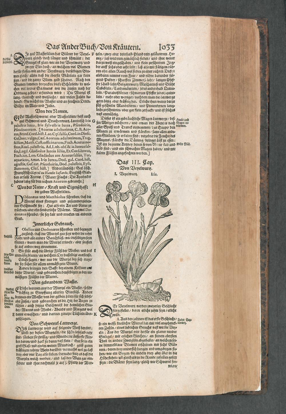 D. Jacobi Theodori Tabernaemontani, Neu vollkommen Kräuter-Buch : Darinnen Uber 3000. Kräuter/ mit schönen und kunstlichen Figuren/ auch deren Underscheid und Würckung/ samt ihren Namen in mancherley Sprachen/ beschrieben: Desgleichen auch/ wie dieselbige in allerhand Kranckheiten/ beyde der Menschen und des Viehs/ sollen angewendet und gebraucht werden/ angezeigt wird. Erstlichen durch Casparum Bauhinum D. und Profess. Basil. mit vielen neuen Figuren/ nutzlichen Artzneyen/ und anderem/ mit sonderem Fleis gebesseret/ Zum Andern Durch Hieronymum Bauhinum D. und Profess. Basil. mit sehr nutzlichen Marginalien, Synonimis, neuen Registeren und anderem vermehrt