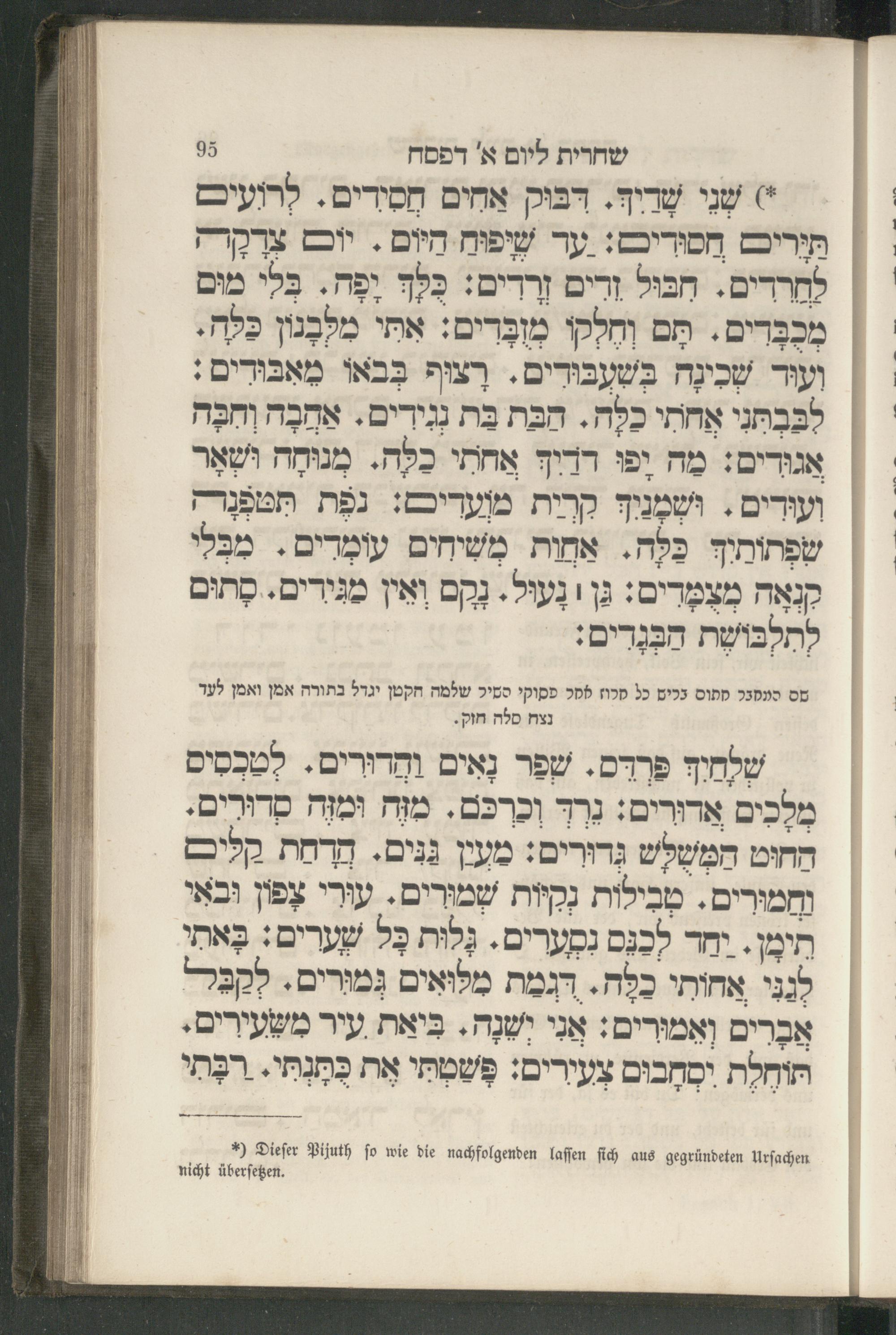 7. Theil (1857) Gebete für den 1. und 2. Tag des Peßach-Festes