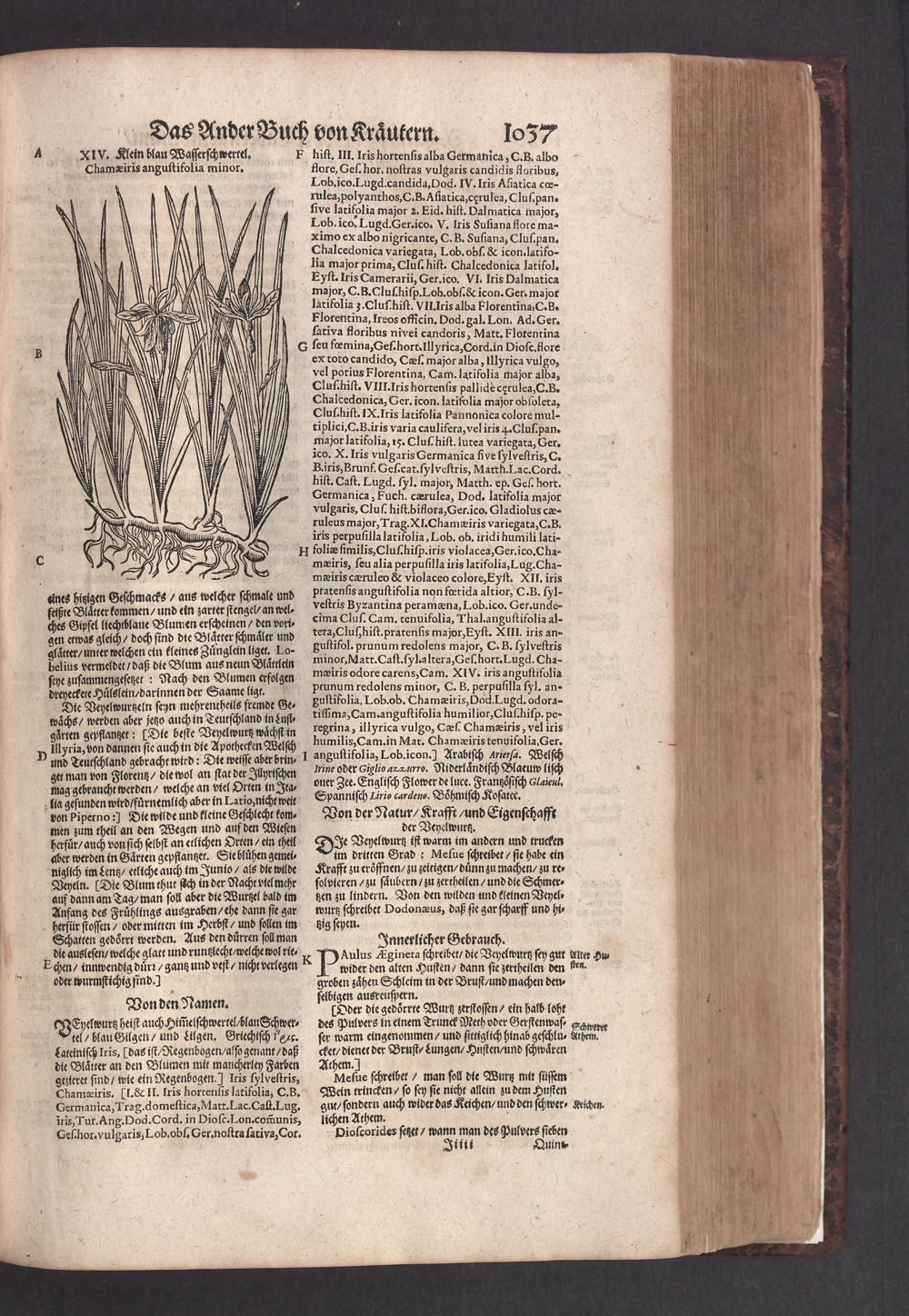 D. Jacobi Theodori Tabernaemontani, Neu vollkommen Kräuter-Buch : Darinnen Uber 3000. Kräuter/ mit schönen und kunstlichen Figuren/ auch deren Underscheid und Würckung/ samt ihren Namen in mancherley Sprachen/ beschrieben: Desgleichen auch/ wie dieselbige in allerhand Kranckheiten/ beyde der Menschen und des Viehs/ sollen angewendet und gebraucht werden/ angezeigt wird. Erstlichen durch Casparum Bauhinum D. und Profess. Basil. mit vielen neuen Figuren/ nutzlichen Artzneyen/ und anderem/ mit sonderem Fleis gebesseret/ Zum Andern Durch Hieronymum Bauhinum D. und Profess. Basil. mit sehr nutzlichen Marginalien, Synonimis, neuen Registeren und anderem vermehrt