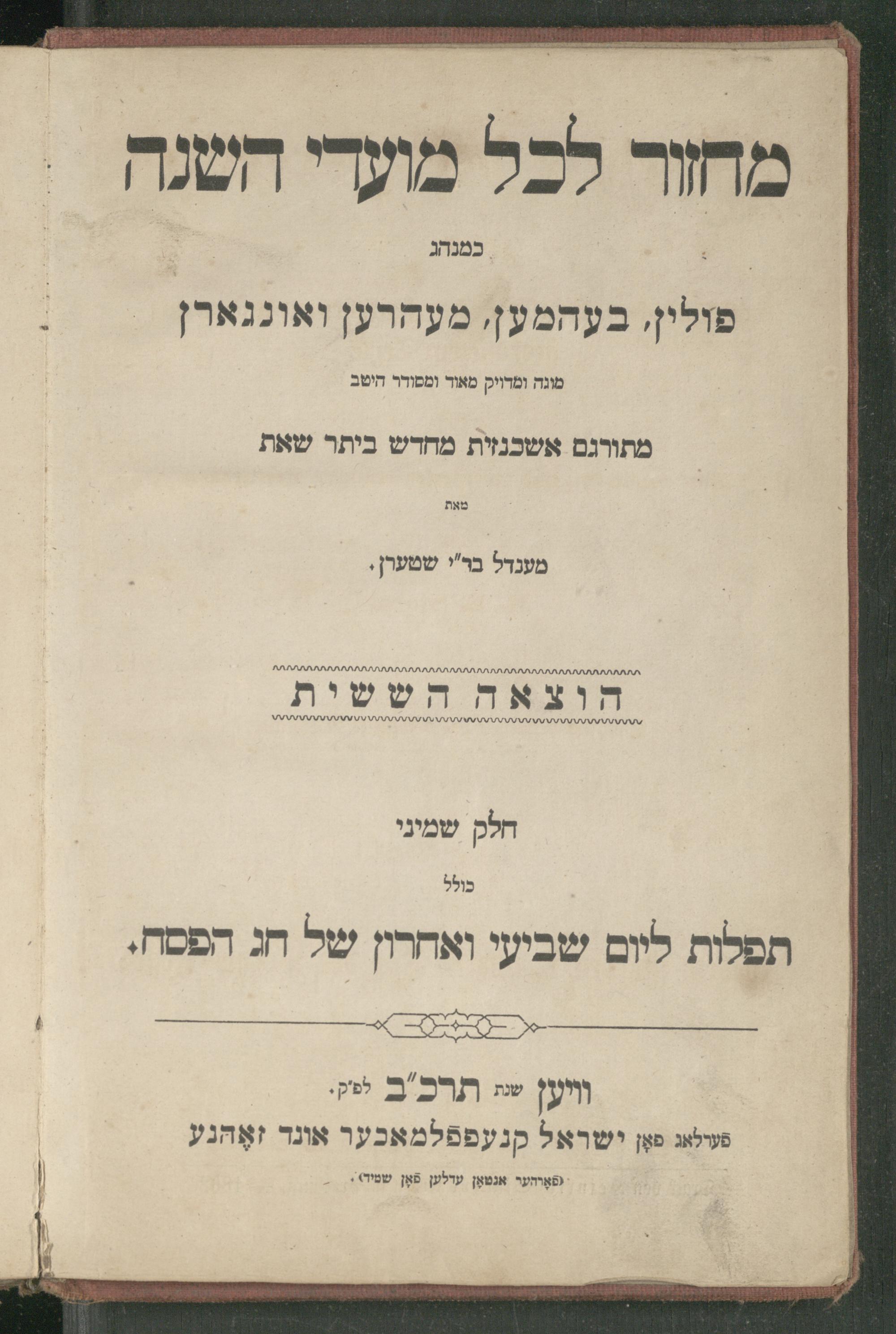 8. Theil (1862) Gebete für den 7. und 8. Tag des Peßach-Festes