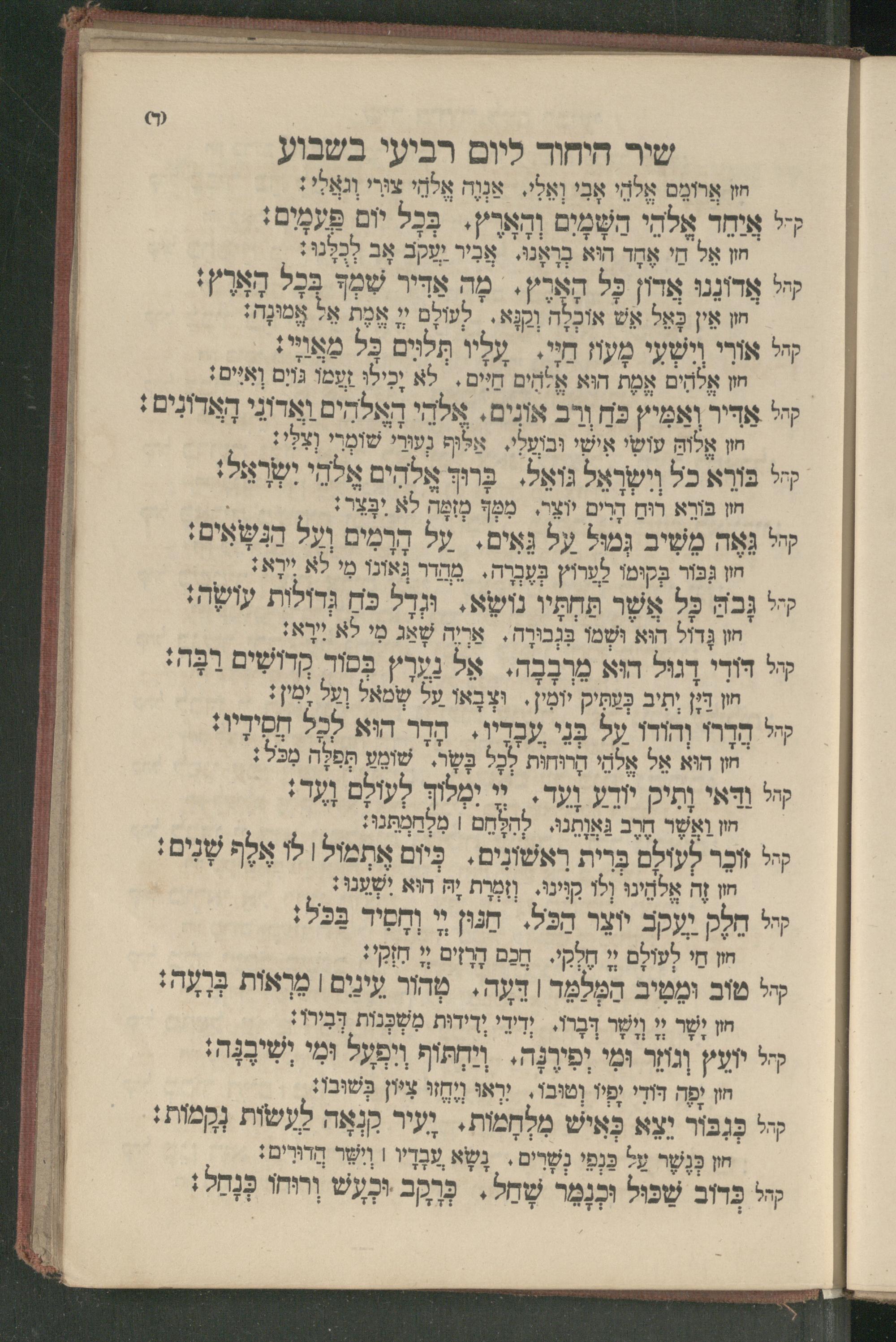 שיר היחוד ליום רביעי בשבוע