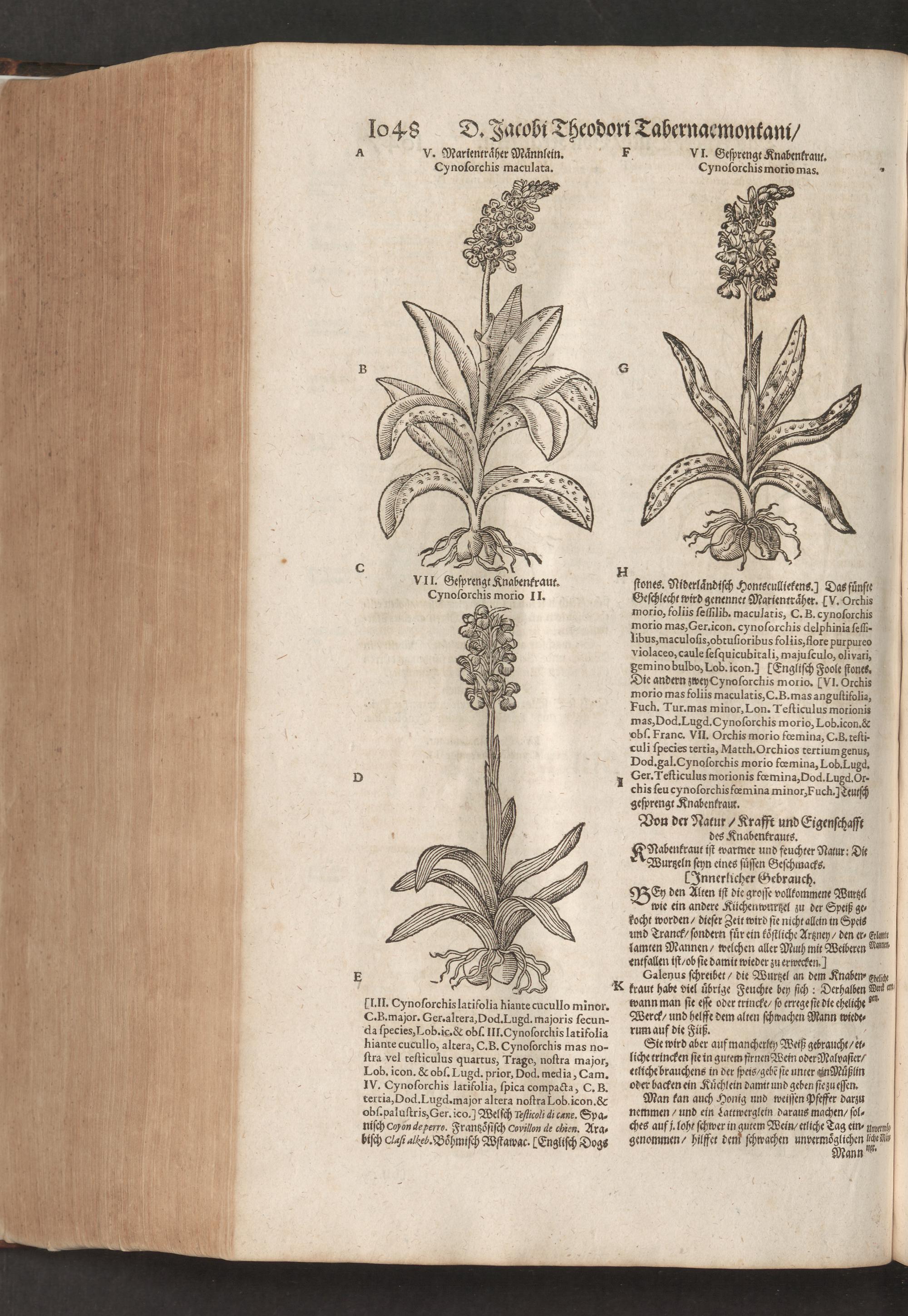 D. Jacobi Theodori Tabernaemontani, Neu vollkommen Kräuter-Buch : Darinnen Uber 3000. Kräuter/ mit schönen und kunstlichen Figuren/ auch deren Underscheid und Würckung/ samt ihren Namen in mancherley Sprachen/ beschrieben: Desgleichen auch/ wie dieselbige in allerhand Kranckheiten/ beyde der Menschen und des Viehs/ sollen angewendet und gebraucht werden/ angezeigt wird. Erstlichen durch Casparum Bauhinum D. und Profess. Basil. mit vielen neuen Figuren/ nutzlichen Artzneyen/ und anderem/ mit sonderem Fleis gebesseret/ Zum Andern Durch Hieronymum Bauhinum D. und Profess. Basil. mit sehr nutzlichen Marginalien, Synonimis, neuen Registeren und anderem vermehrt