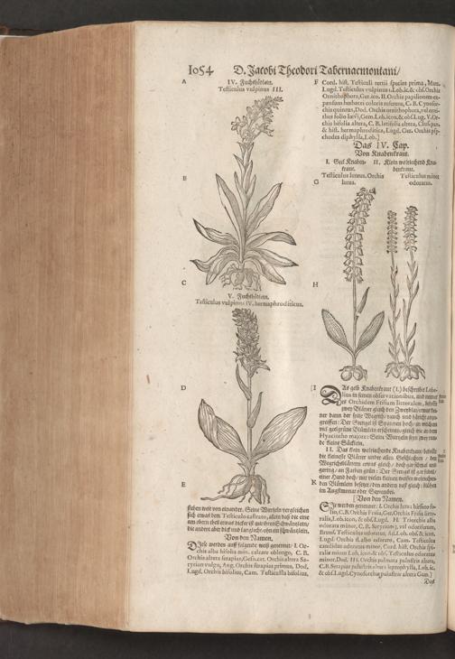 D. Jacobi Theodori Tabernaemontani, Neu vollkommen Kräuter-Buch : Darinnen Uber 3000. Kräuter/ mit schönen und kunstlichen Figuren/ auch deren Underscheid und Würckung/ samt ihren Namen in mancherley Sprachen/ beschrieben: Desgleichen auch/ wie dieselbige in allerhand Kranckheiten/ beyde der Menschen und des Viehs/ sollen angewendet und gebraucht werden/ angezeigt wird. Erstlichen durch Casparum Bauhinum D. und Profess. Basil. mit vielen neuen Figuren/ nutzlichen Artzneyen/ und anderem/ mit sonderem Fleis gebesseret/ Zum Andern Durch Hieronymum Bauhinum D. und Profess. Basil. mit sehr nutzlichen Marginalien, Synonimis, neuen Registeren und anderem vermehrt