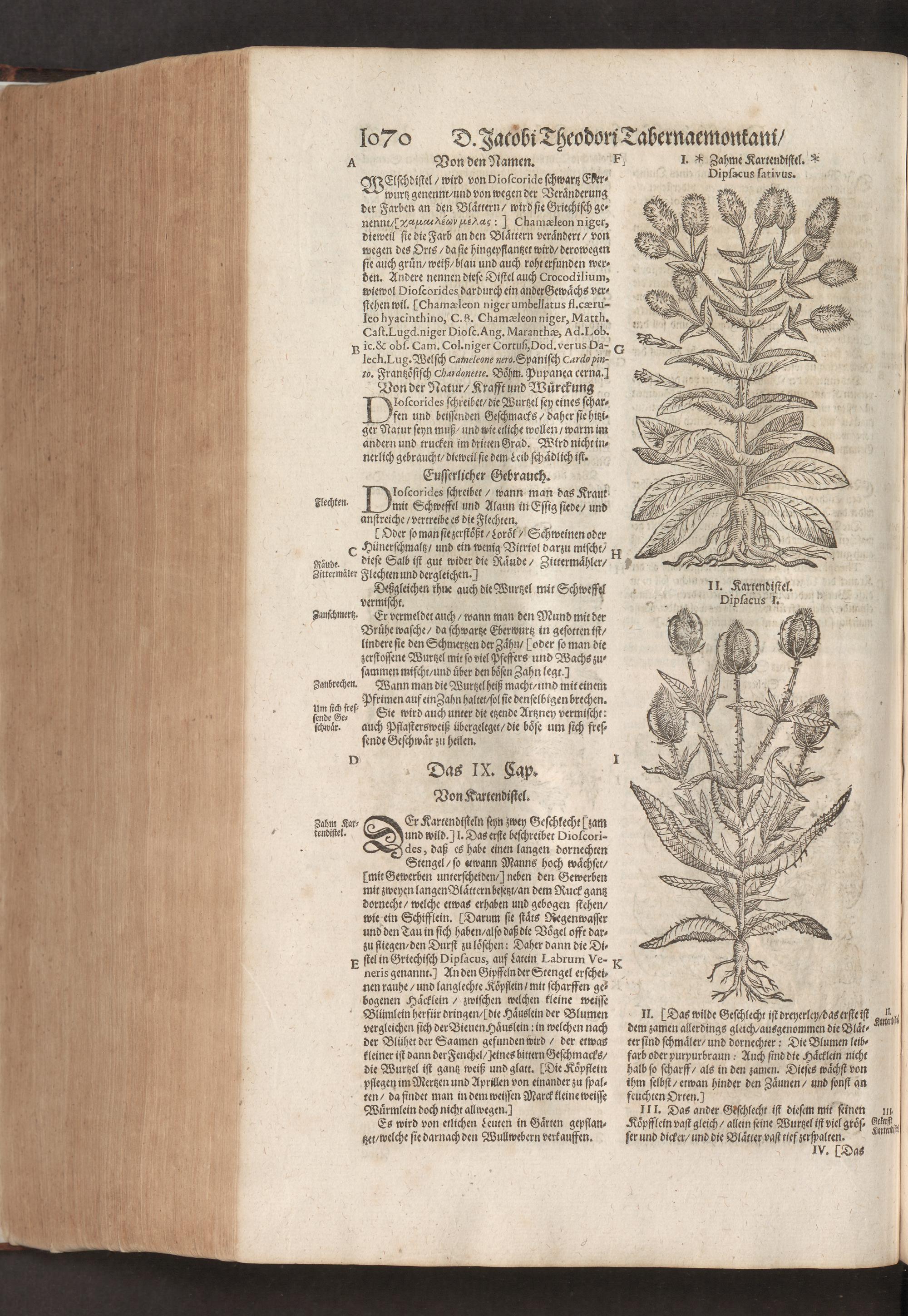 D. Jacobi Theodori Tabernaemontani, Neu vollkommen Kräuter-Buch : Darinnen Uber 3000. Kräuter/ mit schönen und kunstlichen Figuren/ auch deren Underscheid und Würckung/ samt ihren Namen in mancherley Sprachen/ beschrieben: Desgleichen auch/ wie dieselbige in allerhand Kranckheiten/ beyde der Menschen und des Viehs/ sollen angewendet und gebraucht werden/ angezeigt wird. Erstlichen durch Casparum Bauhinum D. und Profess. Basil. mit vielen neuen Figuren/ nutzlichen Artzneyen/ und anderem/ mit sonderem Fleis gebesseret/ Zum Andern Durch Hieronymum Bauhinum D. und Profess. Basil. mit sehr nutzlichen Marginalien, Synonimis, neuen Registeren und anderem vermehrt