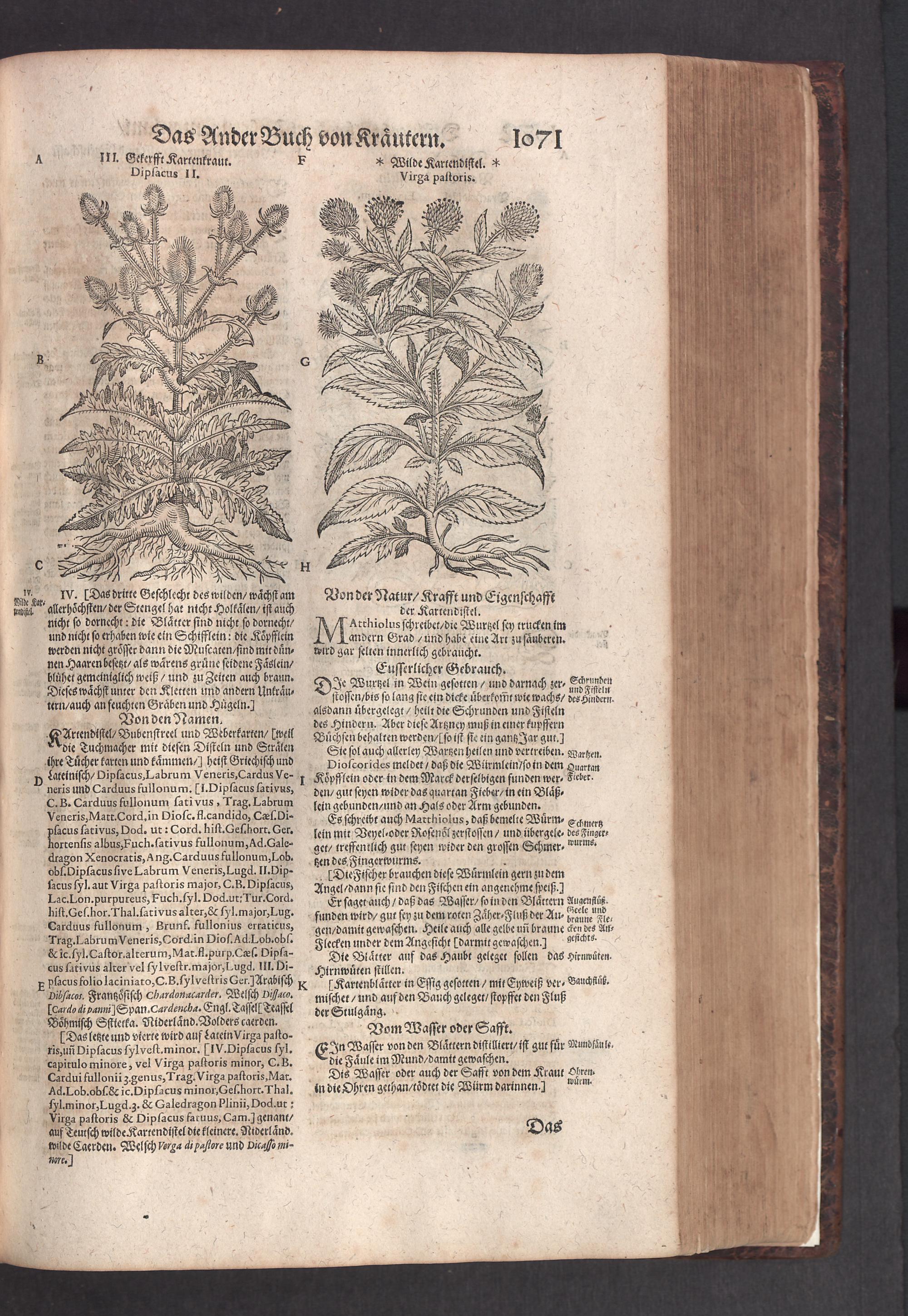 D. Jacobi Theodori Tabernaemontani, Neu vollkommen Kräuter-Buch : Darinnen Uber 3000. Kräuter/ mit schönen und kunstlichen Figuren/ auch deren Underscheid und Würckung/ samt ihren Namen in mancherley Sprachen/ beschrieben: Desgleichen auch/ wie dieselbige in allerhand Kranckheiten/ beyde der Menschen und des Viehs/ sollen angewendet und gebraucht werden/ angezeigt wird. Erstlichen durch Casparum Bauhinum D. und Profess. Basil. mit vielen neuen Figuren/ nutzlichen Artzneyen/ und anderem/ mit sonderem Fleis gebesseret/ Zum Andern Durch Hieronymum Bauhinum D. und Profess. Basil. mit sehr nutzlichen Marginalien, Synonimis, neuen Registeren und anderem vermehrt