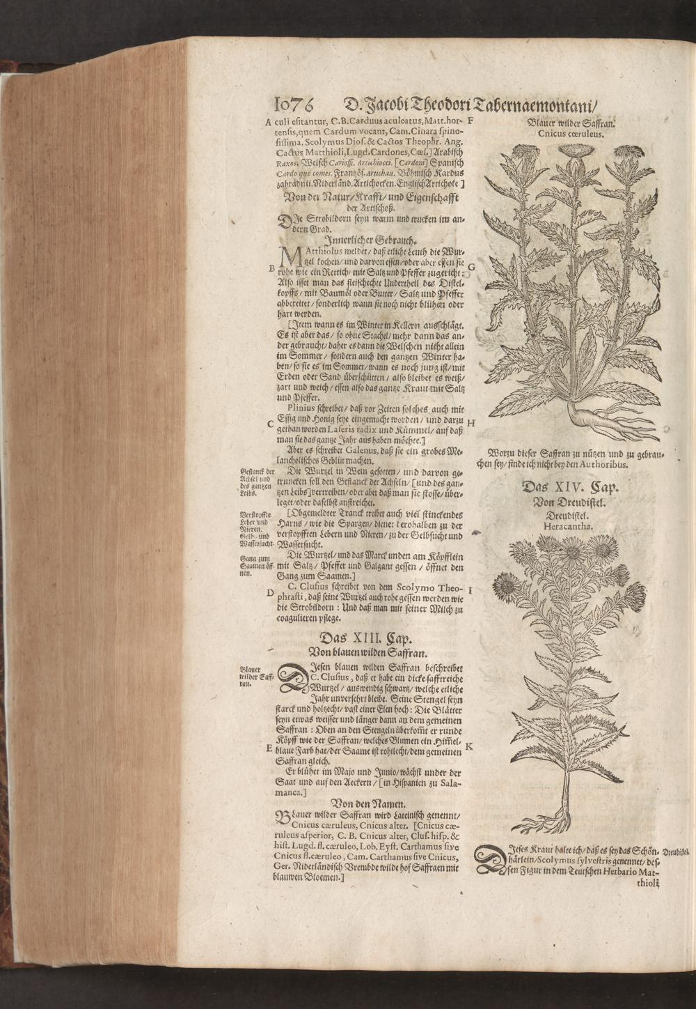 D. Jacobi Theodori Tabernaemontani, Neu vollkommen Kräuter-Buch : Darinnen Uber 3000. Kräuter/ mit schönen und kunstlichen Figuren/ auch deren Underscheid und Würckung/ samt ihren Namen in mancherley Sprachen/ beschrieben: Desgleichen auch/ wie dieselbige in allerhand Kranckheiten/ beyde der Menschen und des Viehs/ sollen angewendet und gebraucht werden/ angezeigt wird. Erstlichen durch Casparum Bauhinum D. und Profess. Basil. mit vielen neuen Figuren/ nutzlichen Artzneyen/ und anderem/ mit sonderem Fleis gebesseret/ Zum Andern Durch Hieronymum Bauhinum D. und Profess. Basil. mit sehr nutzlichen Marginalien, Synonimis, neuen Registeren und anderem vermehrt