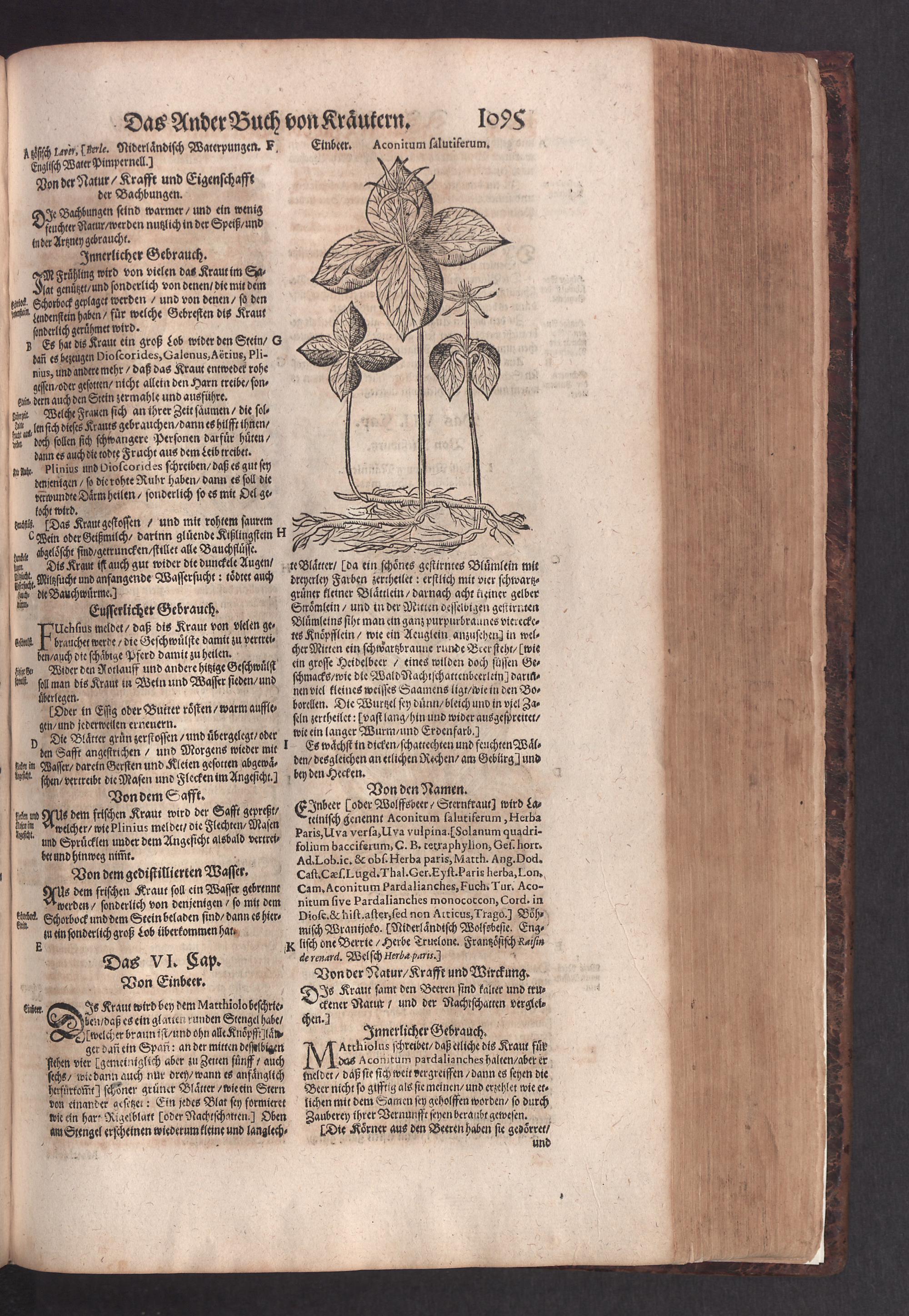 D. Jacobi Theodori Tabernaemontani, Neu vollkommen Kräuter-Buch : Darinnen Uber 3000. Kräuter/ mit schönen und kunstlichen Figuren/ auch deren Underscheid und Würckung/ samt ihren Namen in mancherley Sprachen/ beschrieben: Desgleichen auch/ wie dieselbige in allerhand Kranckheiten/ beyde der Menschen und des Viehs/ sollen angewendet und gebraucht werden/ angezeigt wird. Erstlichen durch Casparum Bauhinum D. und Profess. Basil. mit vielen neuen Figuren/ nutzlichen Artzneyen/ und anderem/ mit sonderem Fleis gebesseret/ Zum Andern Durch Hieronymum Bauhinum D. und Profess. Basil. mit sehr nutzlichen Marginalien, Synonimis, neuen Registeren und anderem vermehrt